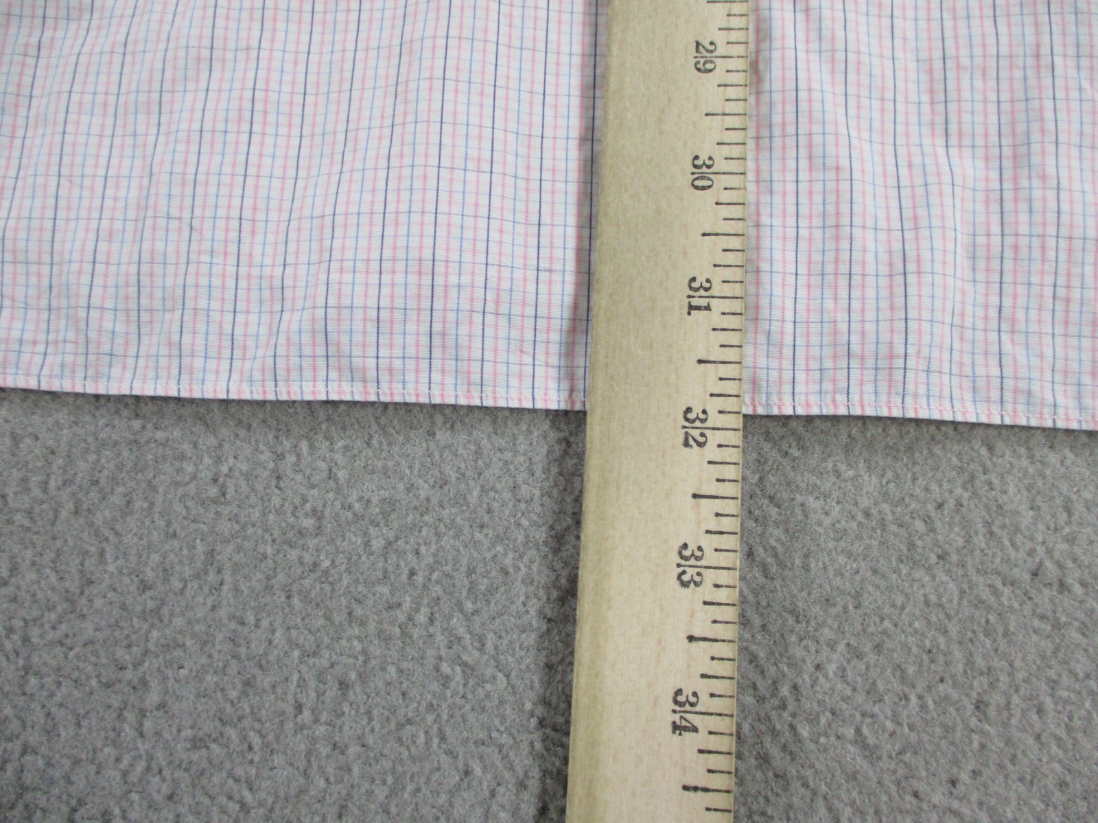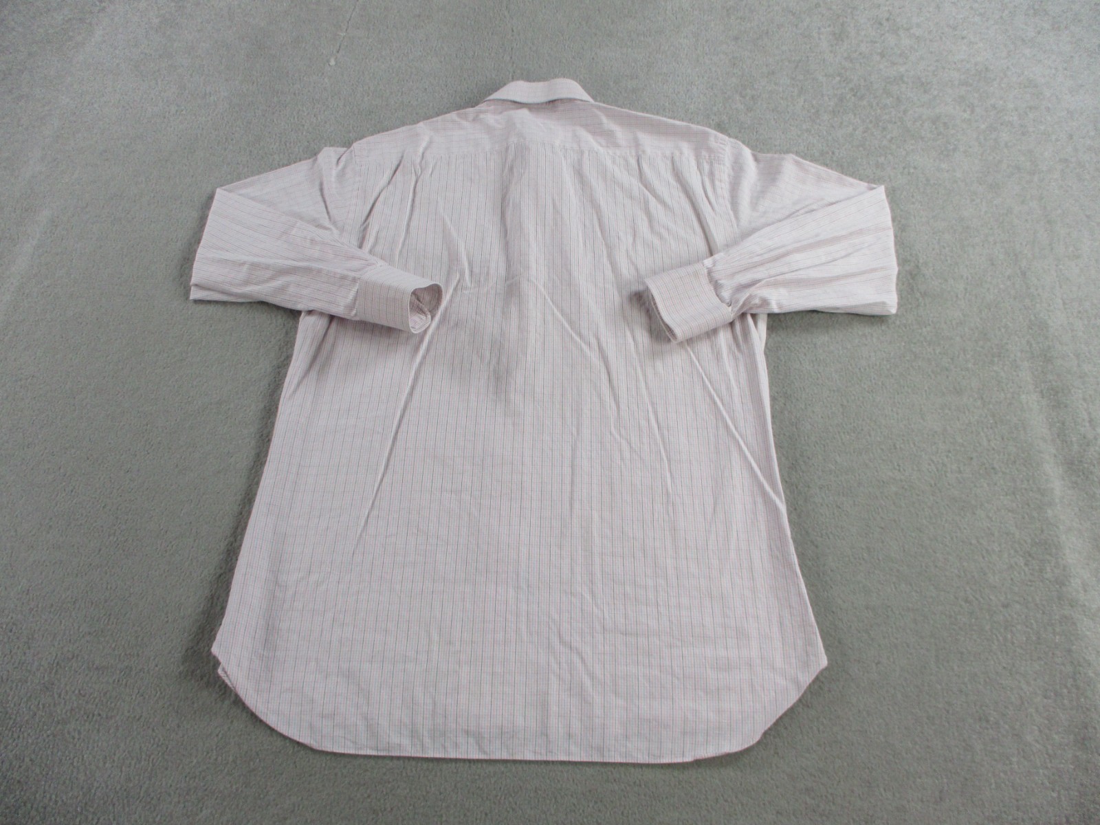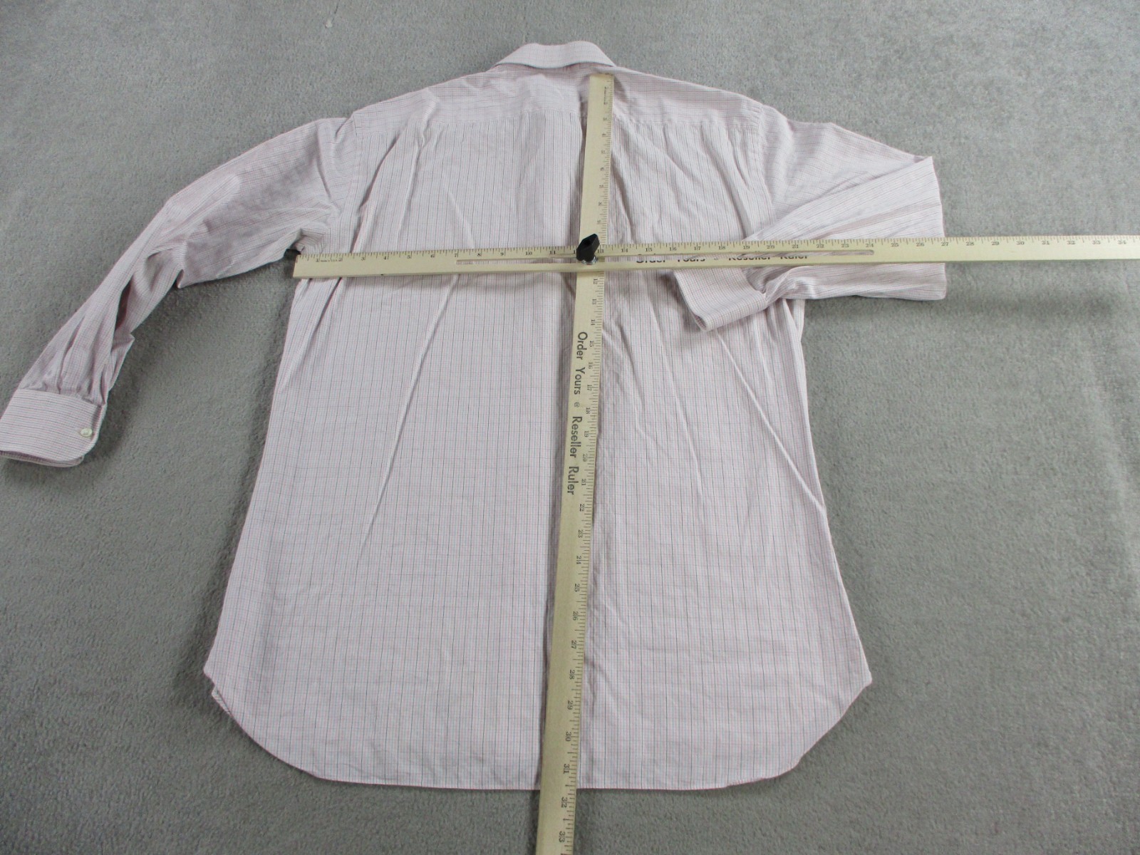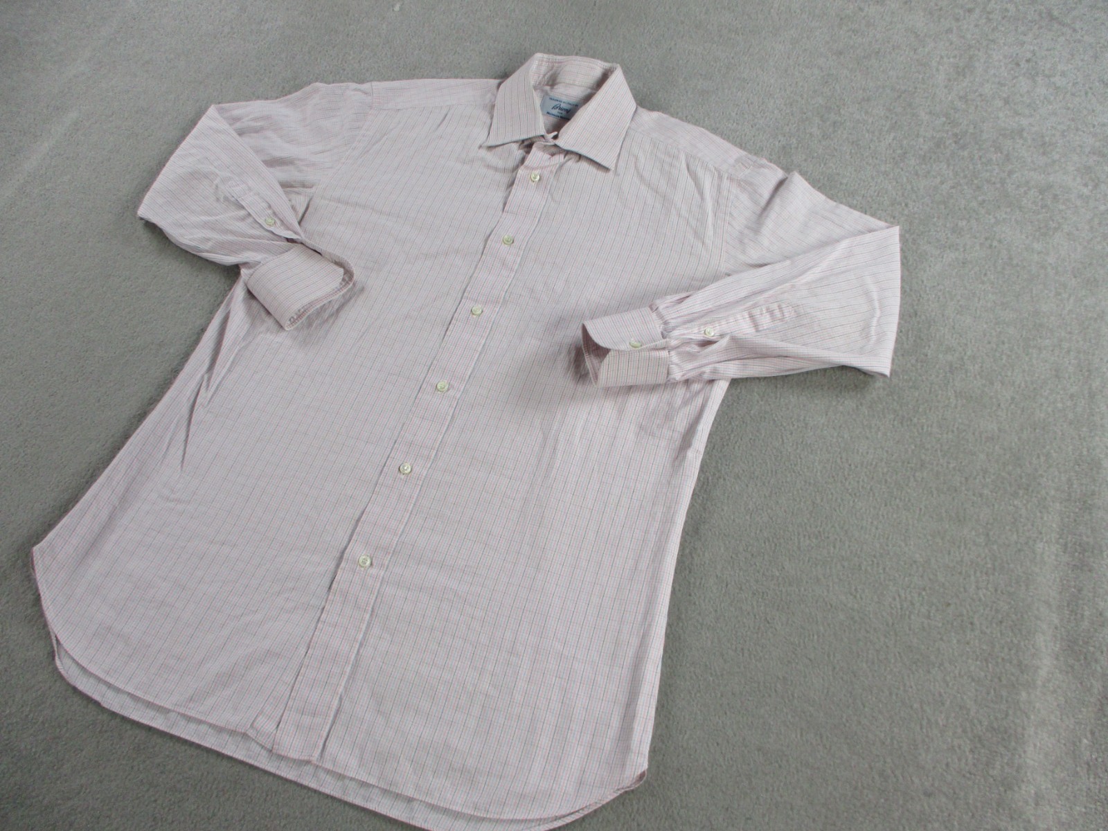 Brioni Dress Shirt Mens 16.5 Pink Blue Check Made in Italy Cotton Button Up