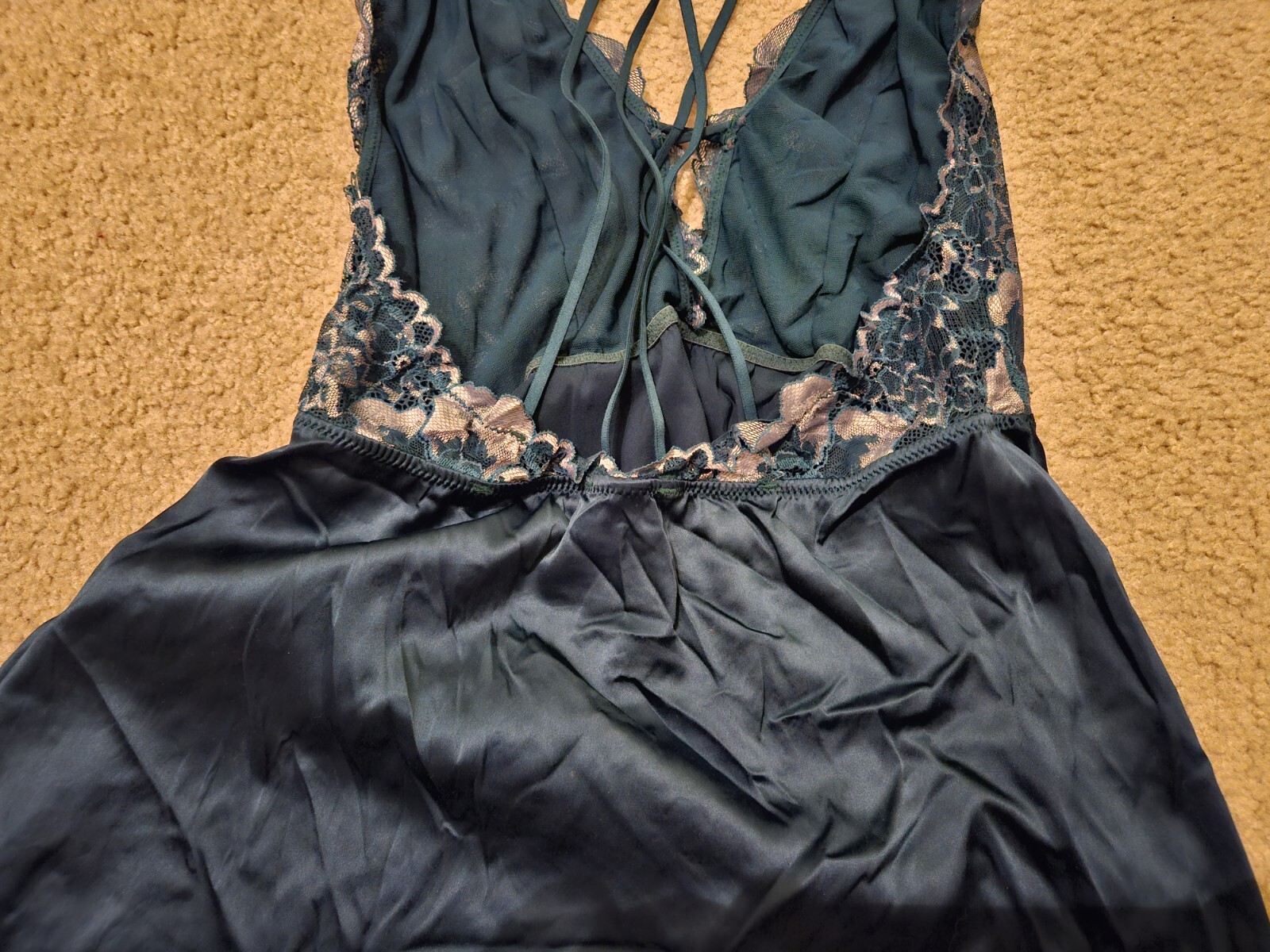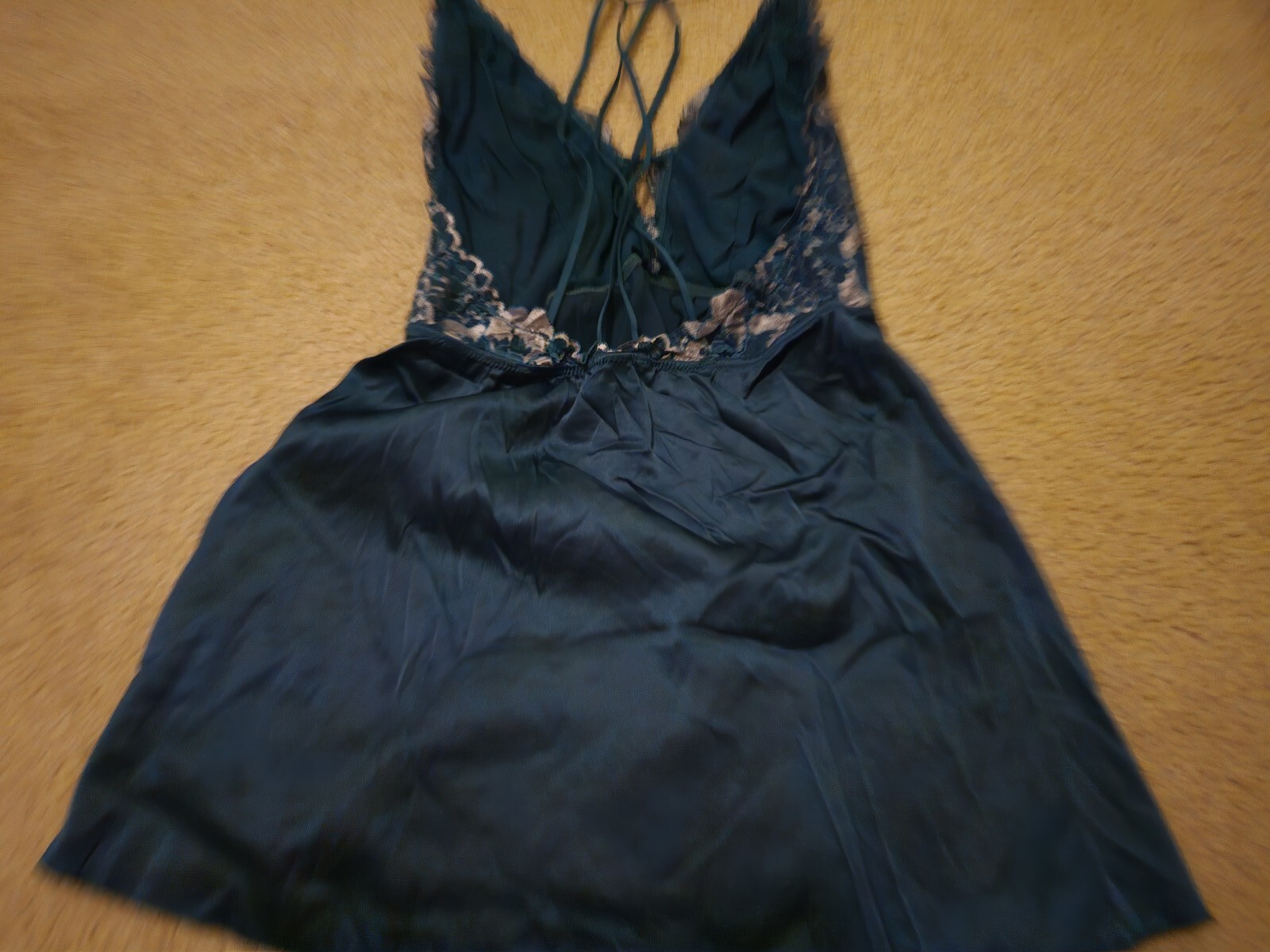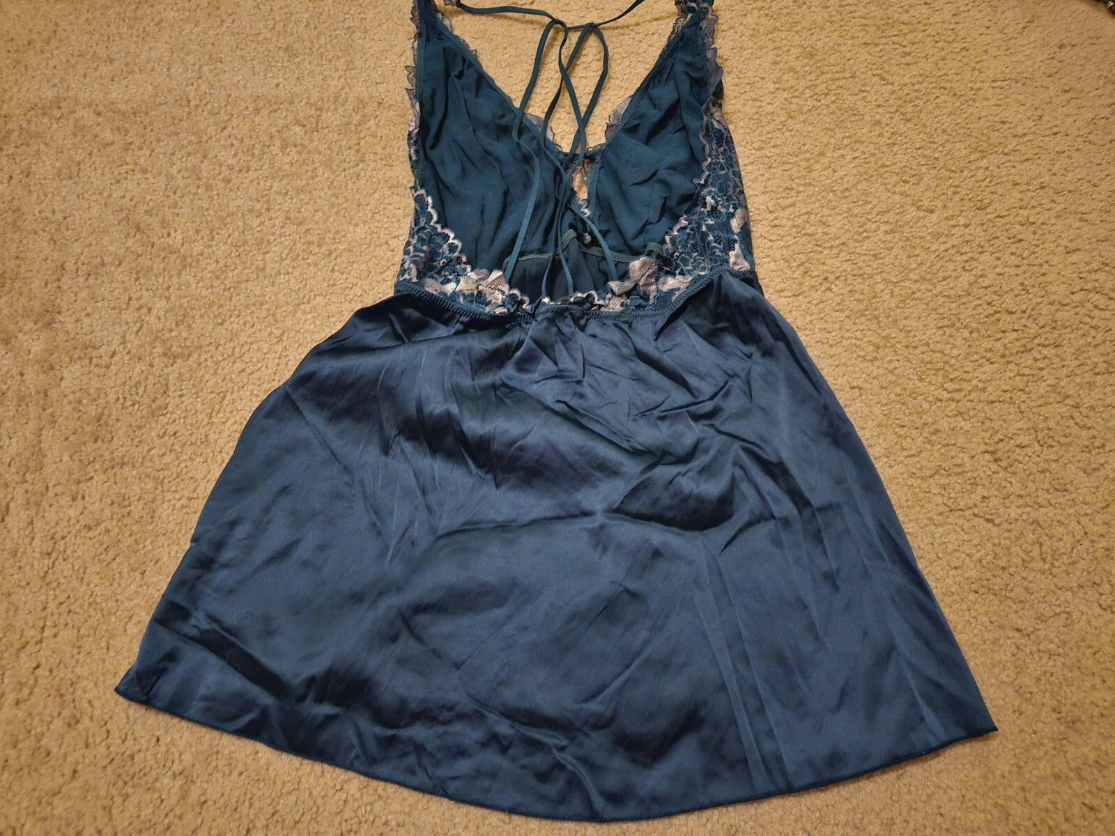 как выглядит Auden Teal Blue Satin Lace Lingerie Chemise Mini Slip Dress Womens L Large Used фото