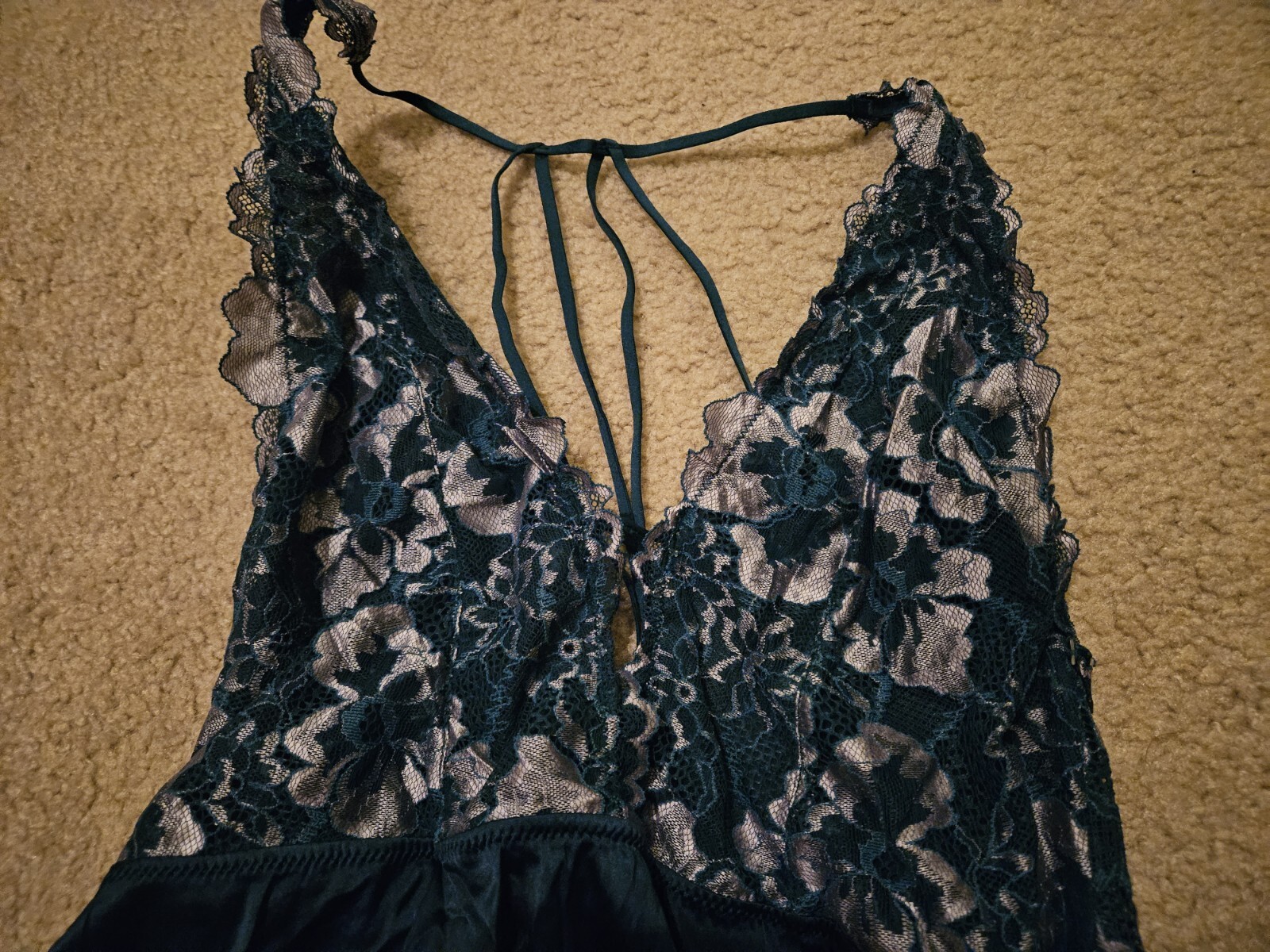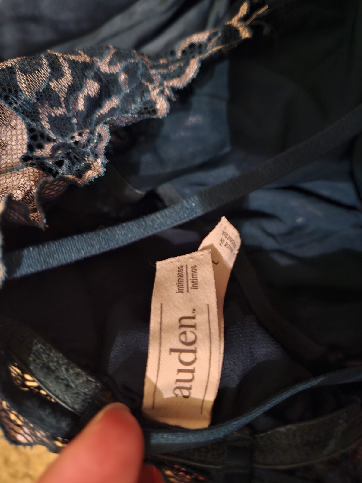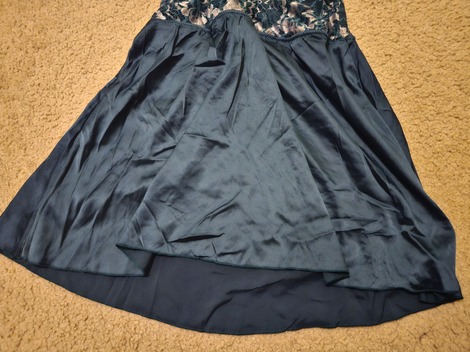 как выглядит Auden Teal Blue Satin Lace Lingerie Chemise Mini Slip Dress Womens L Large Used фото