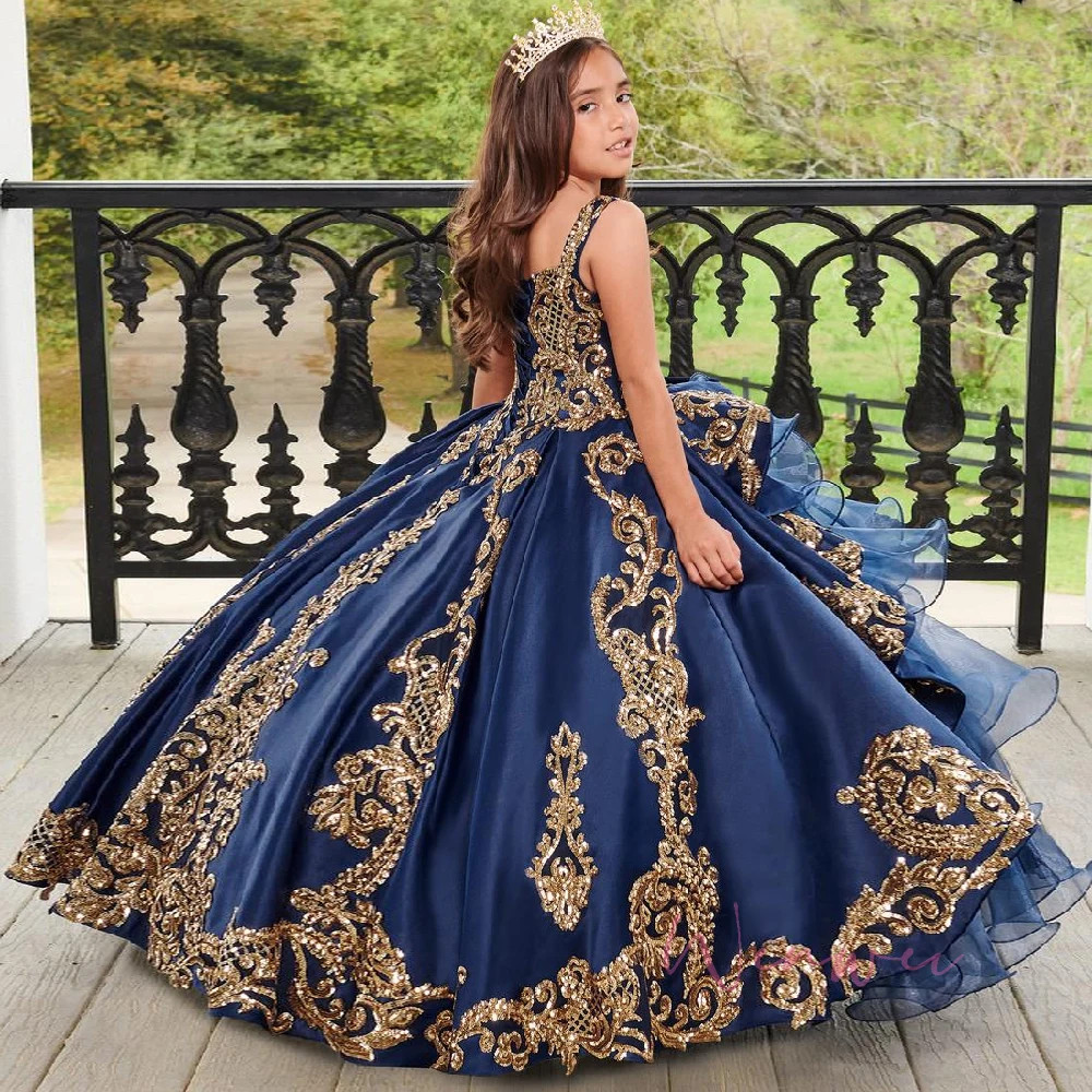 Mini Quinceanera Dress Kids Ruffled Ball Gown Lace Pageant Frock Customized
