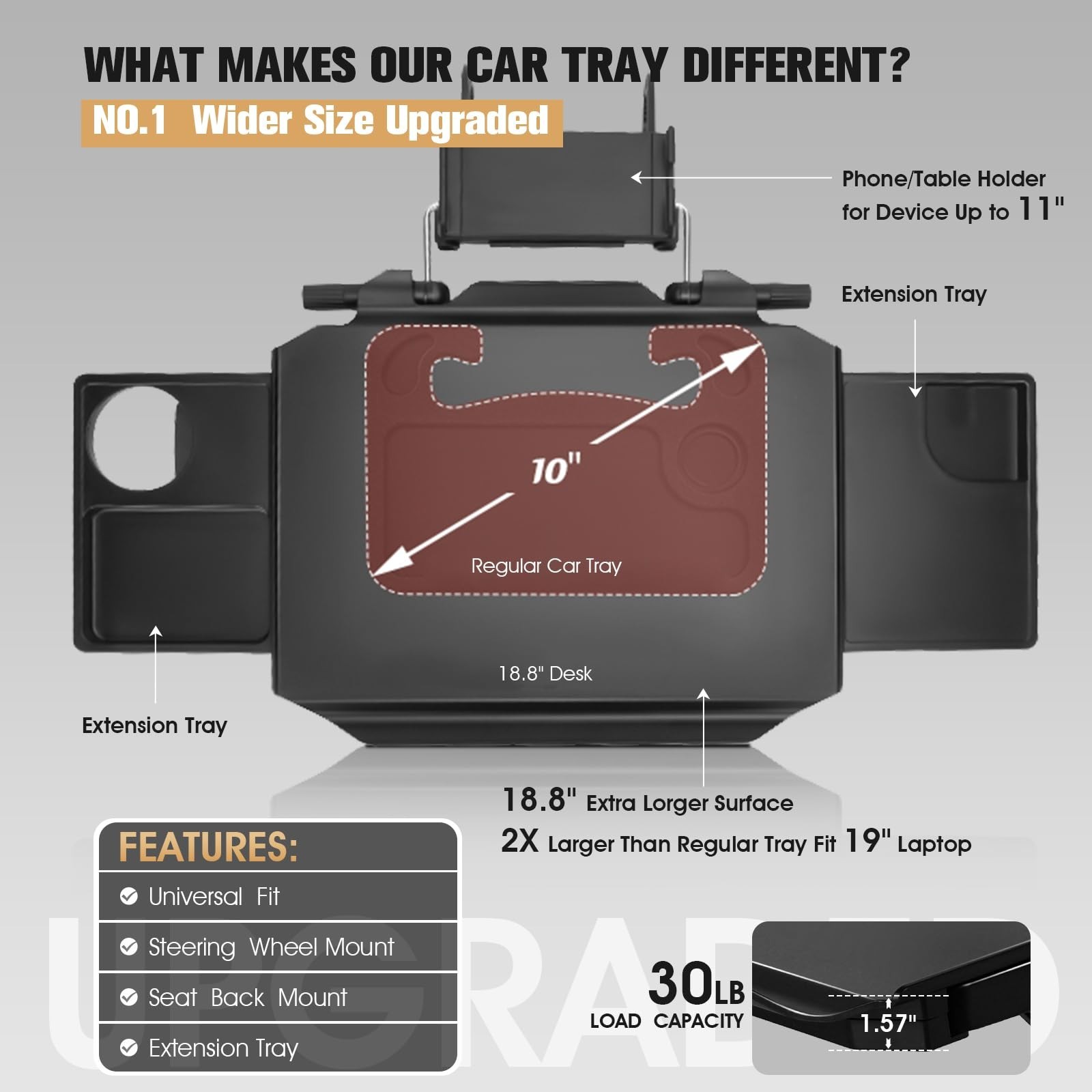 Upgraded Car Steering Wheel Tray with Phone Holder,Steering Wheel Table Tray ...