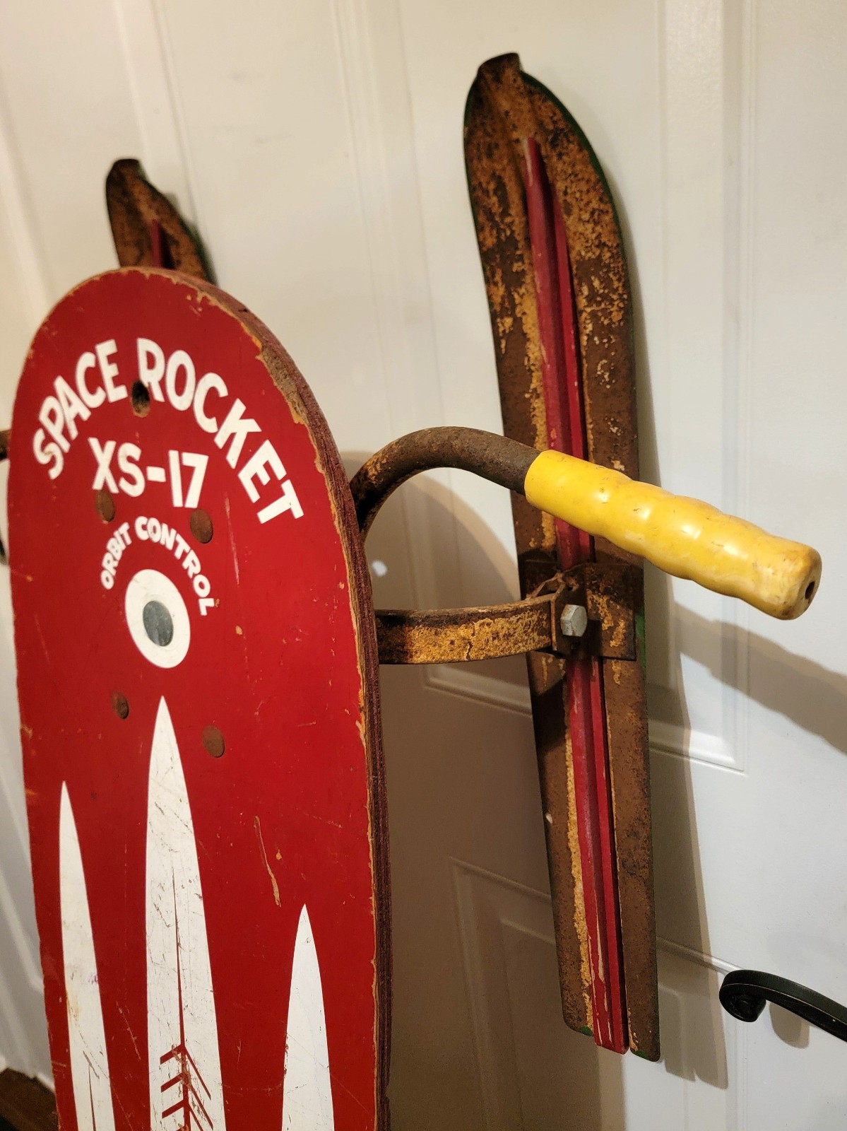 Vintage Space Rocket Sled XS-17 with Orbit Control, Red And White