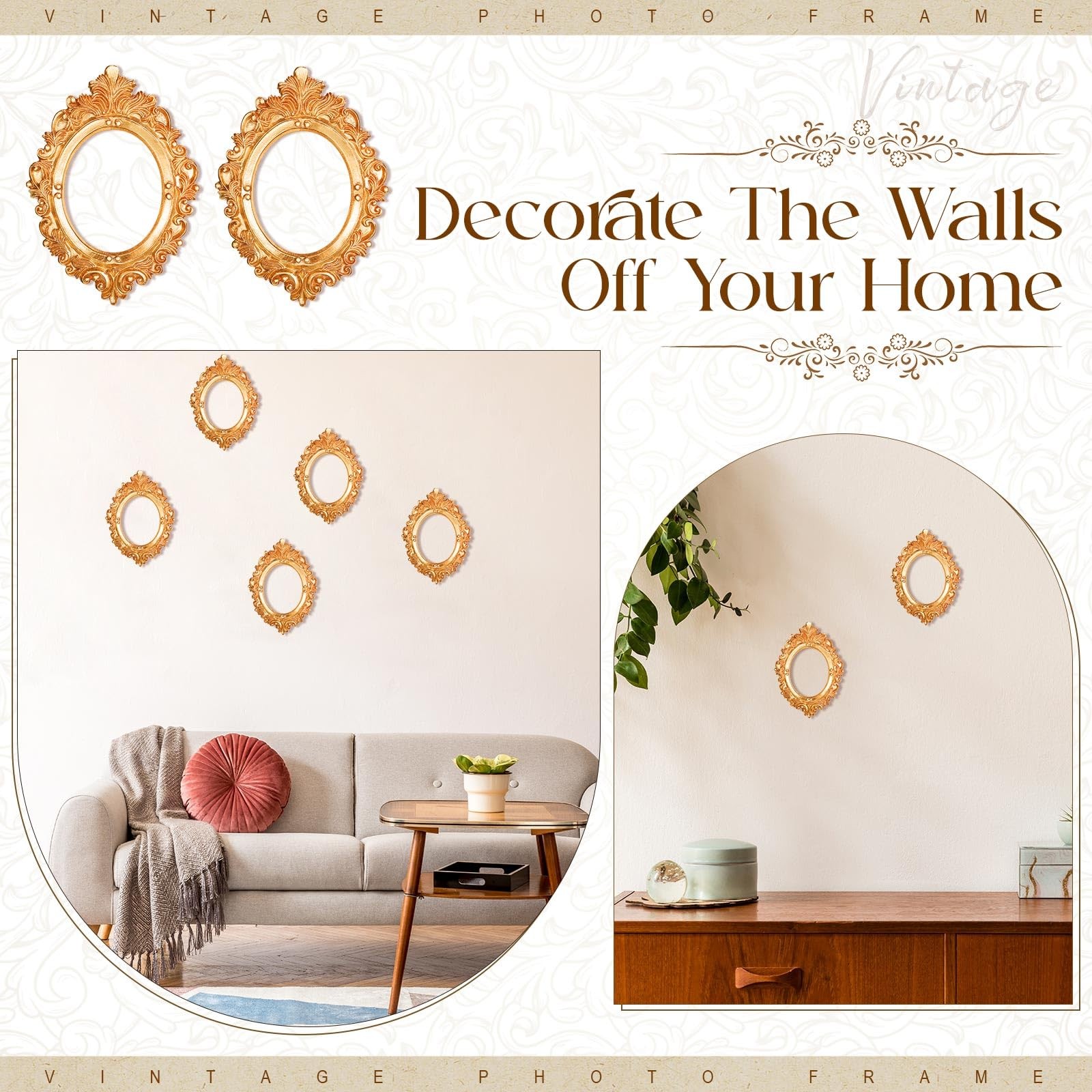 как выглядит 5 Pcs Mini Gold Frames Set Vintage Resin Picture Frames Small Baroque Antique... фото