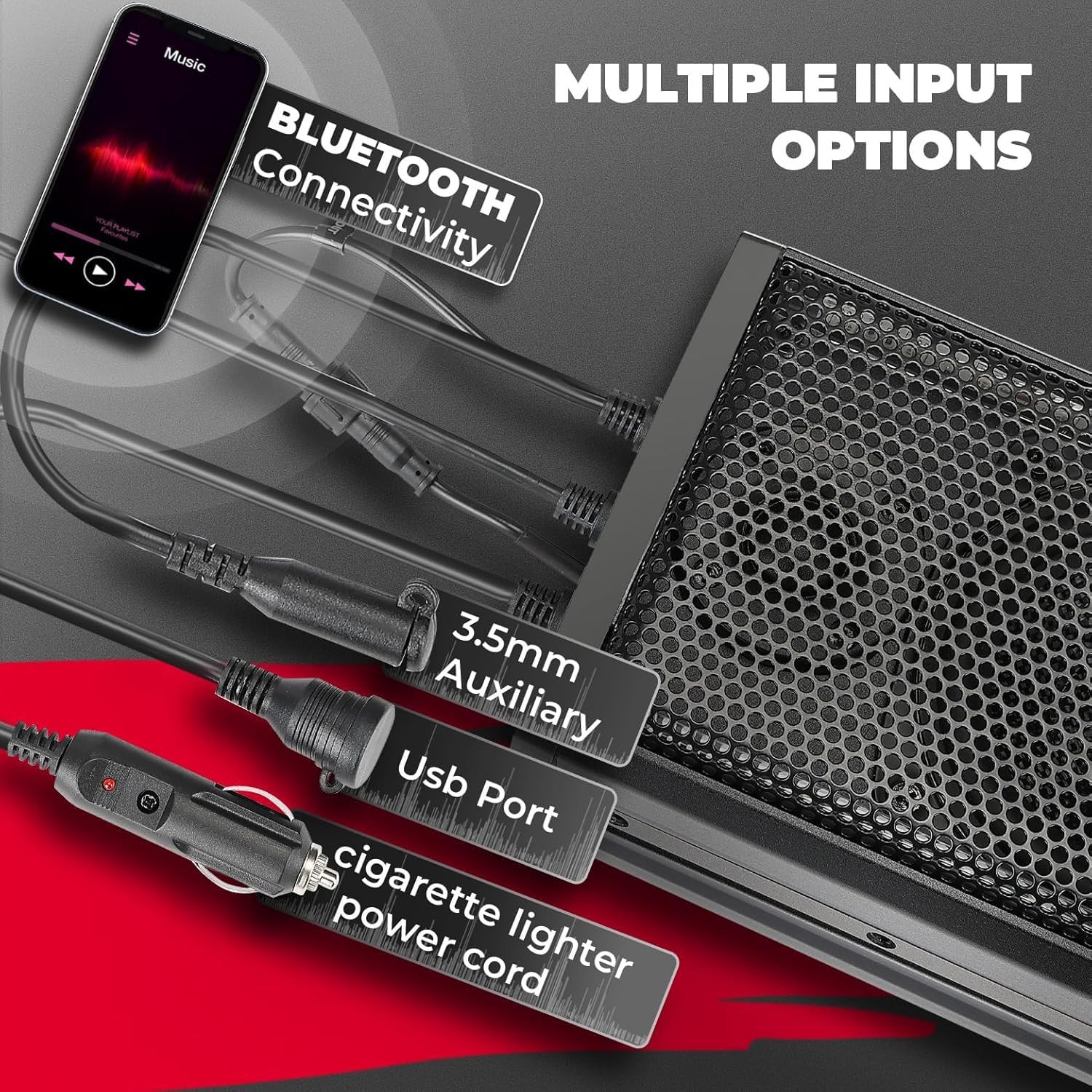 • KEMIMOTO UTV Sound Bar 16" ATV Golf Cart SXS Speakers Bluetooth LED Waterproof