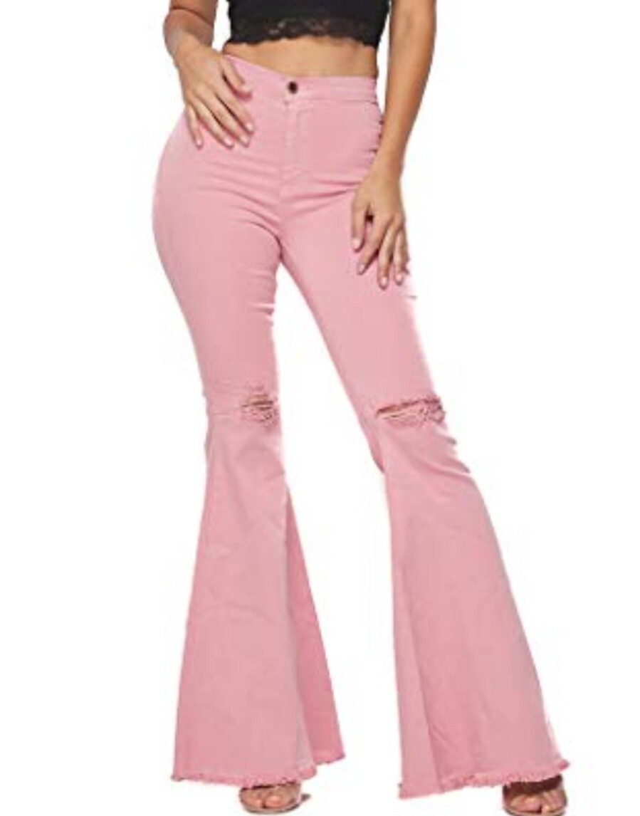 как выглядит Bohemian High Waist Wide Flare 70s Retro Pink Pants Vibrant M.i.u Size 11 29 фото