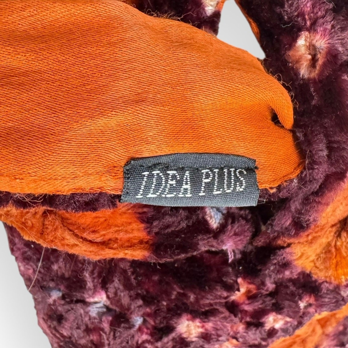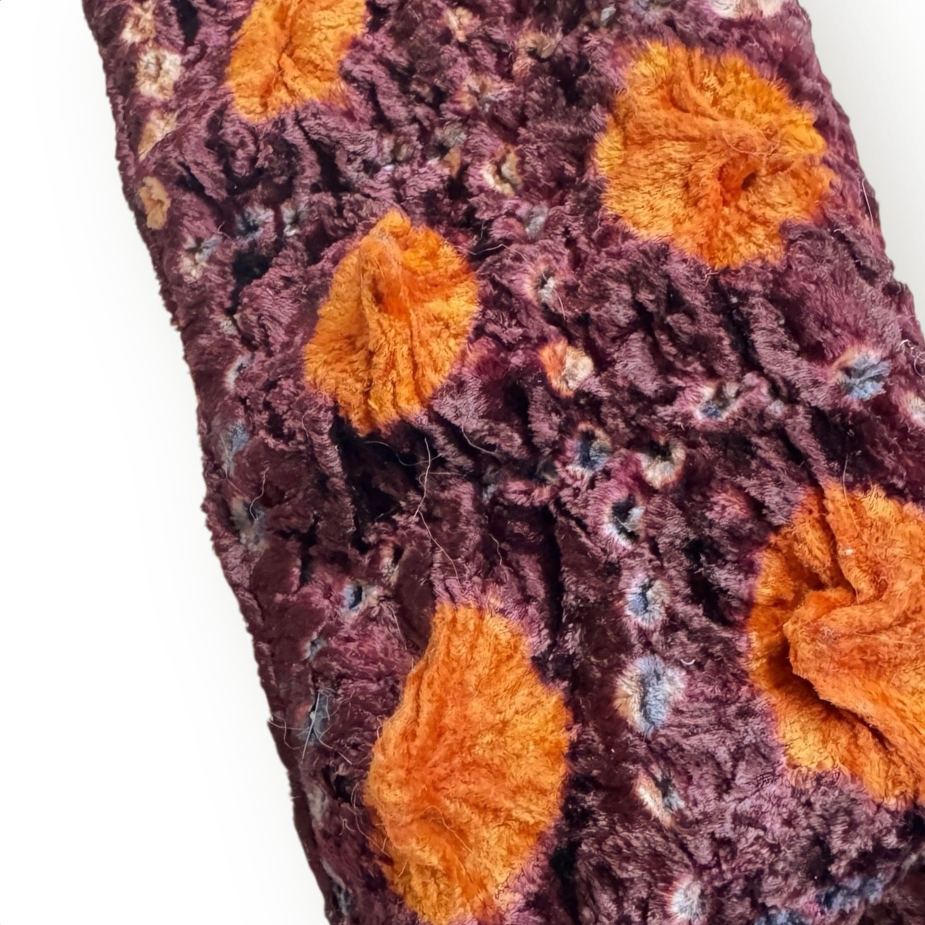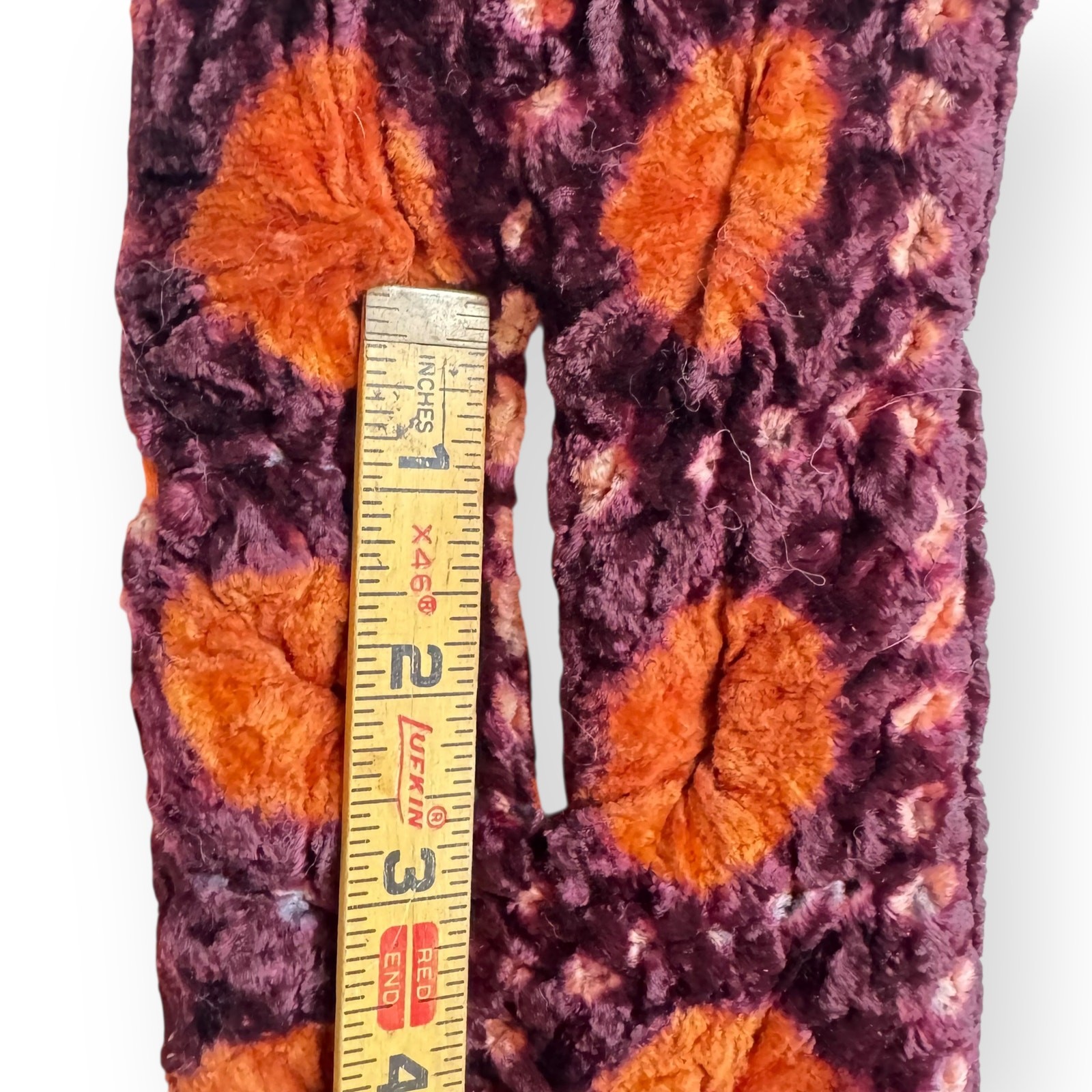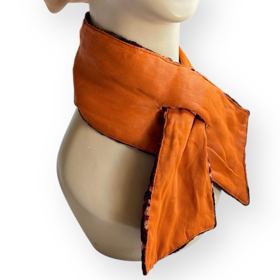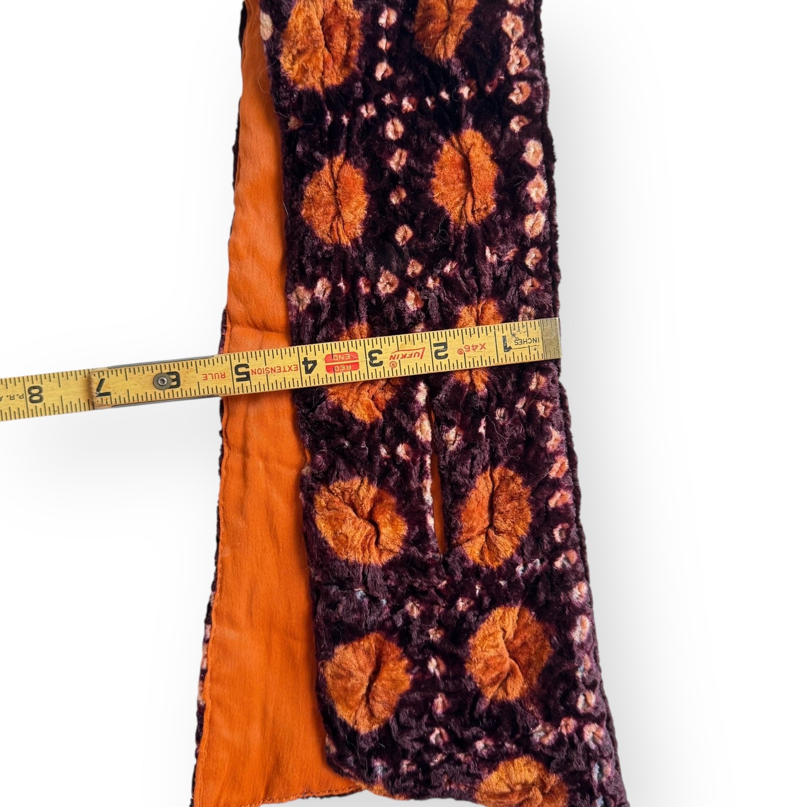 Block Print Reversible Velvet Vintage Pull Through Scarf Orange Mauve Brown 28