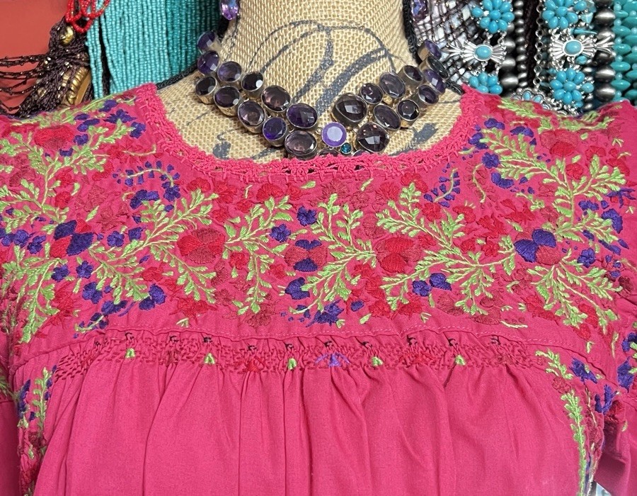 как выглядит Beautiful Raspberry Mexican Oaxaca Multi Color Embroidery Raspberry Crochet M/L фото