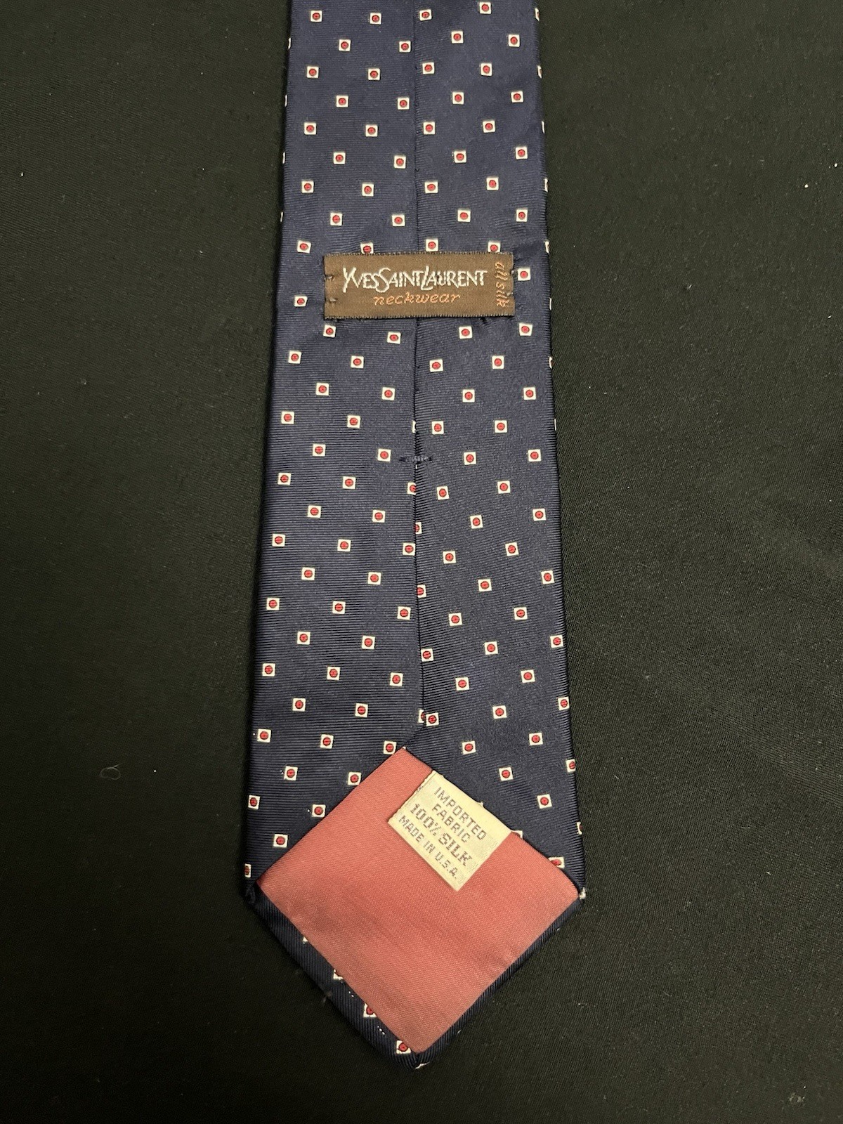 как выглядит VTG Yves Saint Laurent YSL Men Geometric Square Print Silk Necktie USA tie 3x60 фото
