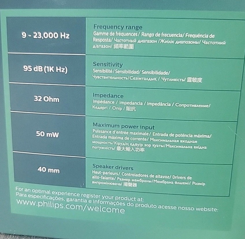 Philips Audio SHP2500 hi-fi headphones over-ear 40mm wired TV 6m long cable