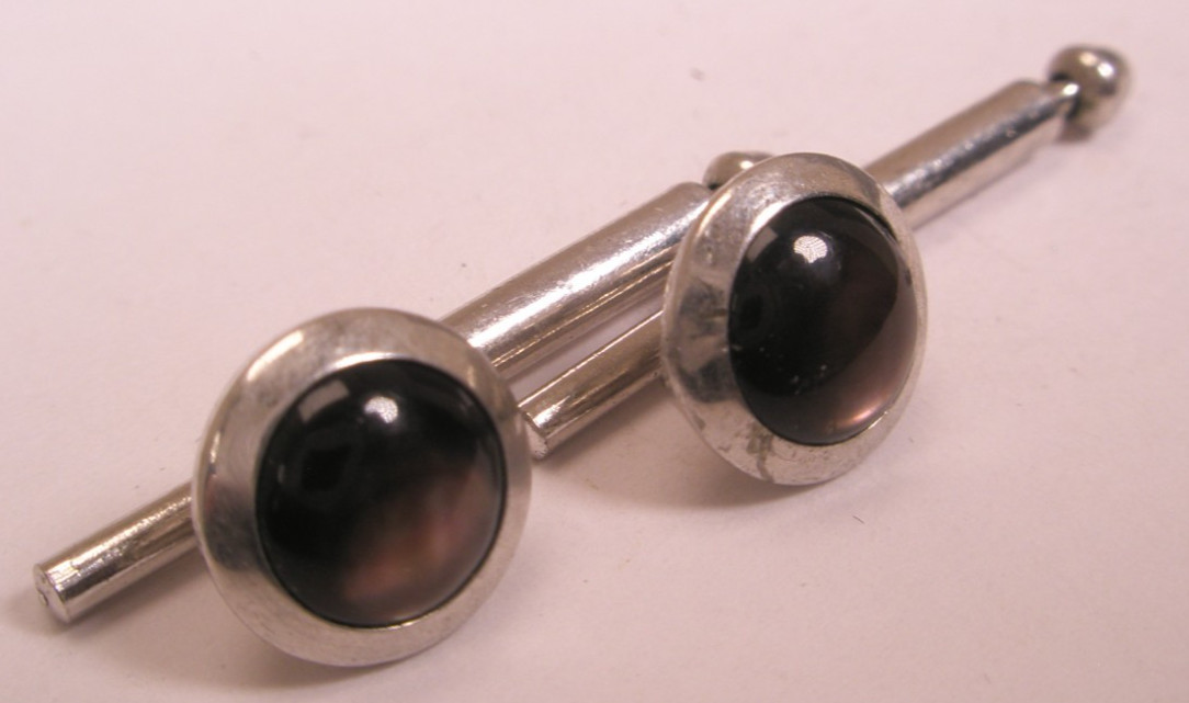 SINGLES 2 5/16 Gray MOP Round Vintage SWANK Formal Tux Prom Shirt Stud c2040
