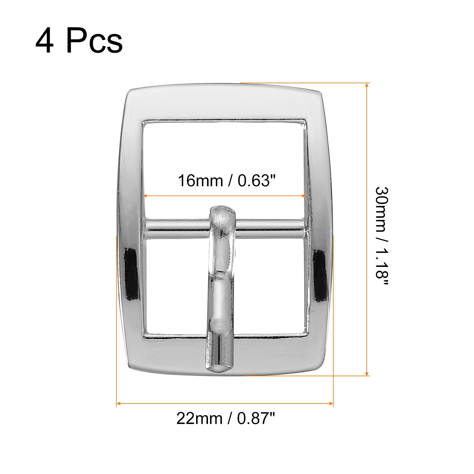 4Pcs 0.63 Single Prong Belt Buckle Square Center Bar Buckles for Belt Silver