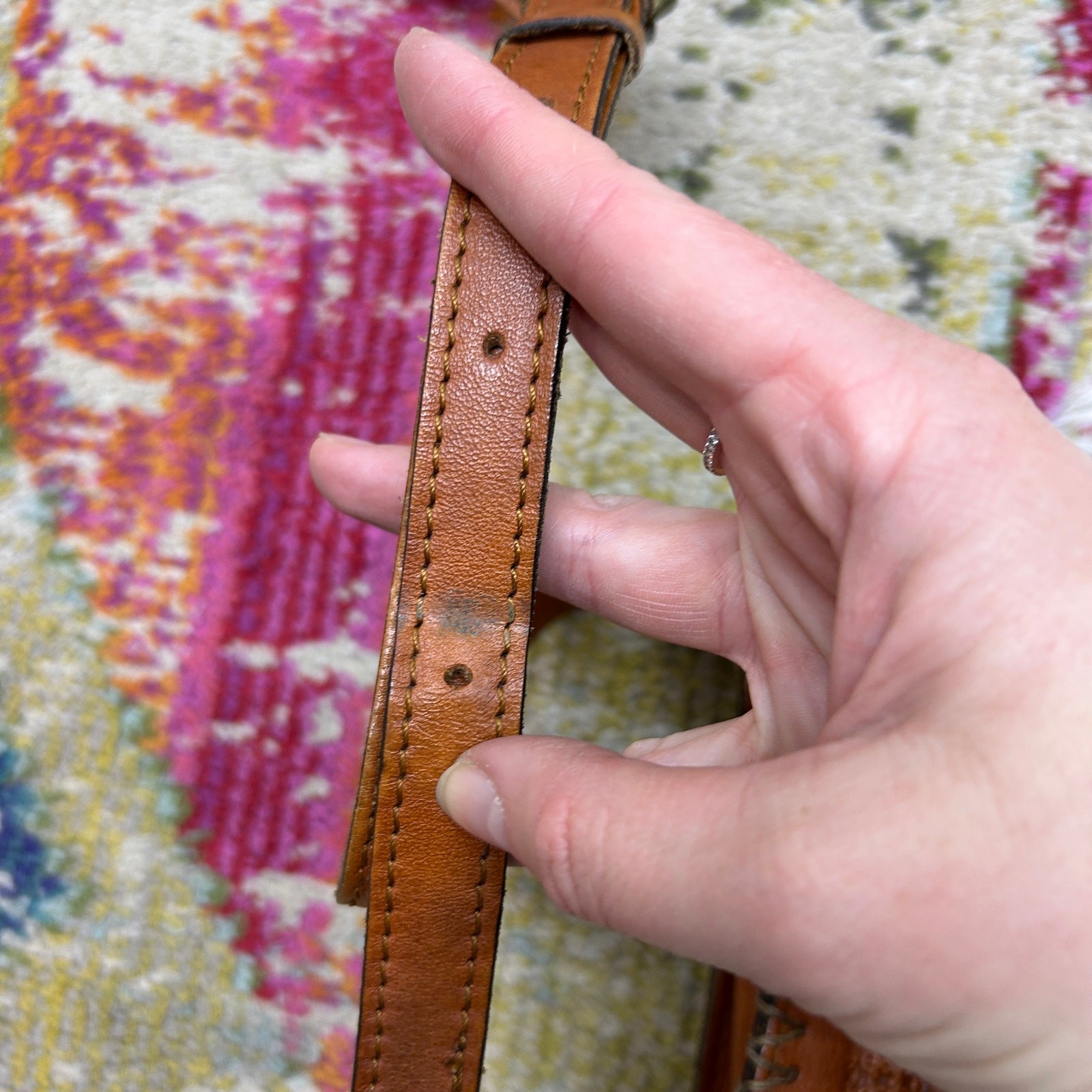 как выглядит Patricia Nash Brown Embossed Hand Tooled Leather Crossbody Bag Purse Neutral фото