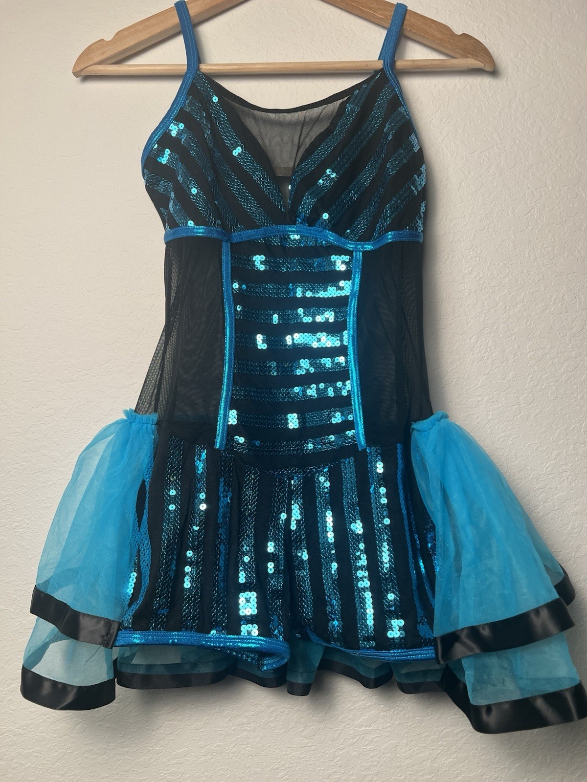 A Wish Come True MA Dance Costume Blue Sequin Dress Tutu Skirt Shorts Strappy