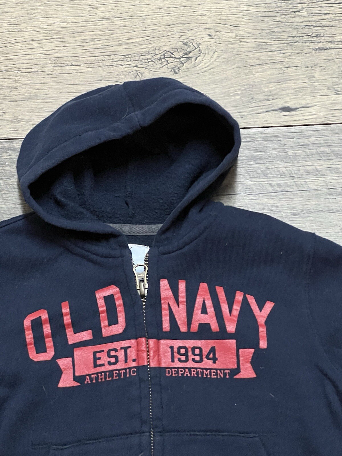 как выглядит Old Navy dark blue logo hooded zip front jacket boys 4T фото