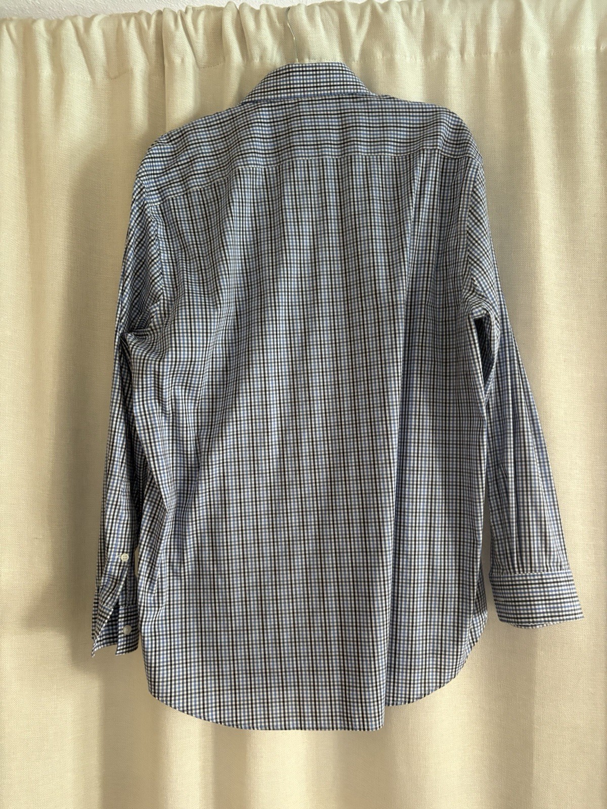 как выглядит Michael Kors Dress Shirt Mens Large Blue Plaid Slim Fit Stretch Long Sleeve New фото