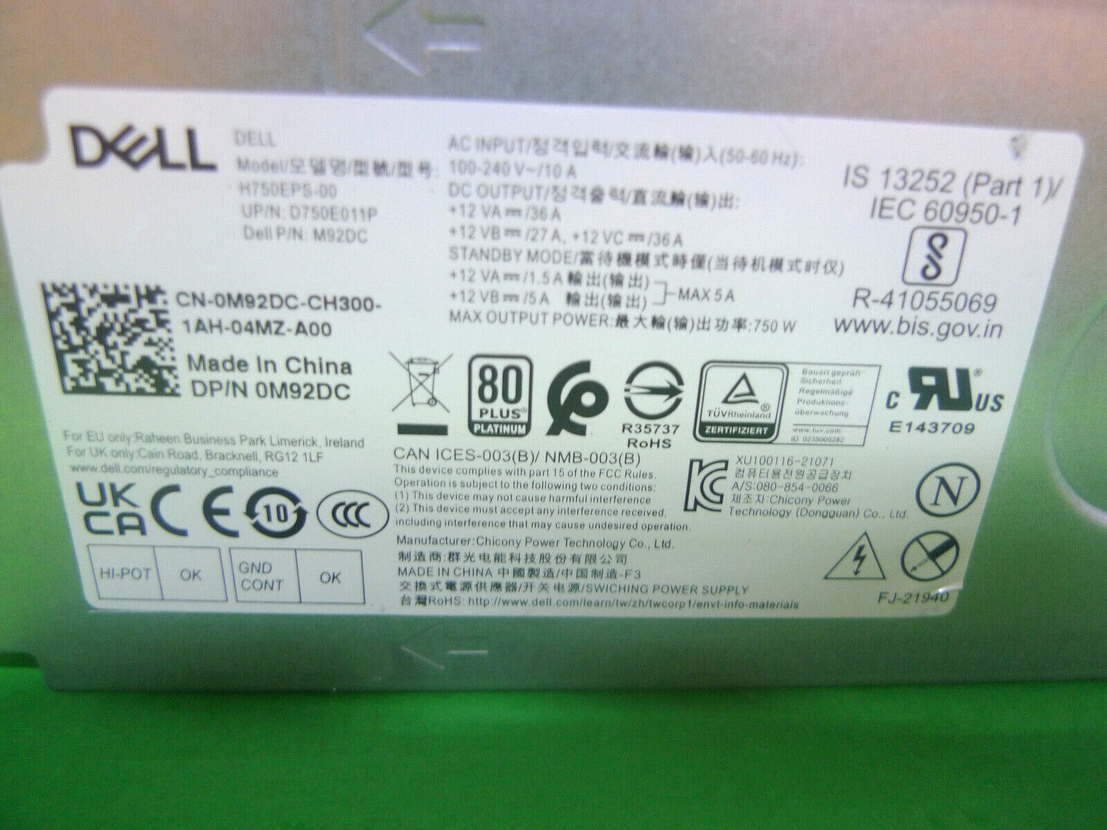 Genuine Alienware R13 R14 750W Power Supply H750EPS-00 M92DC