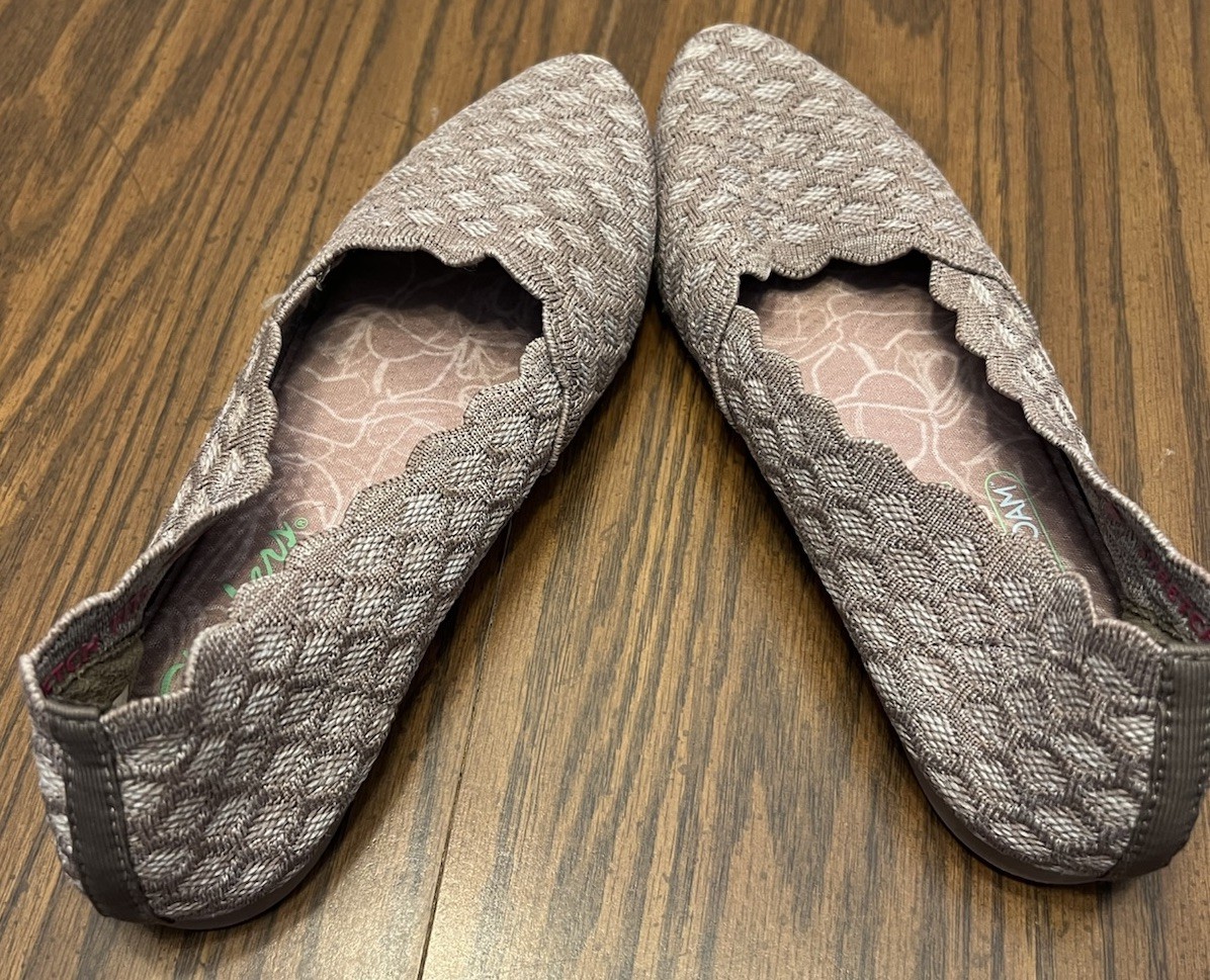 Skechers Women s 6 Ballet Flats Dark Taupe Slip On Cleo Honeycomb Knit Shoe