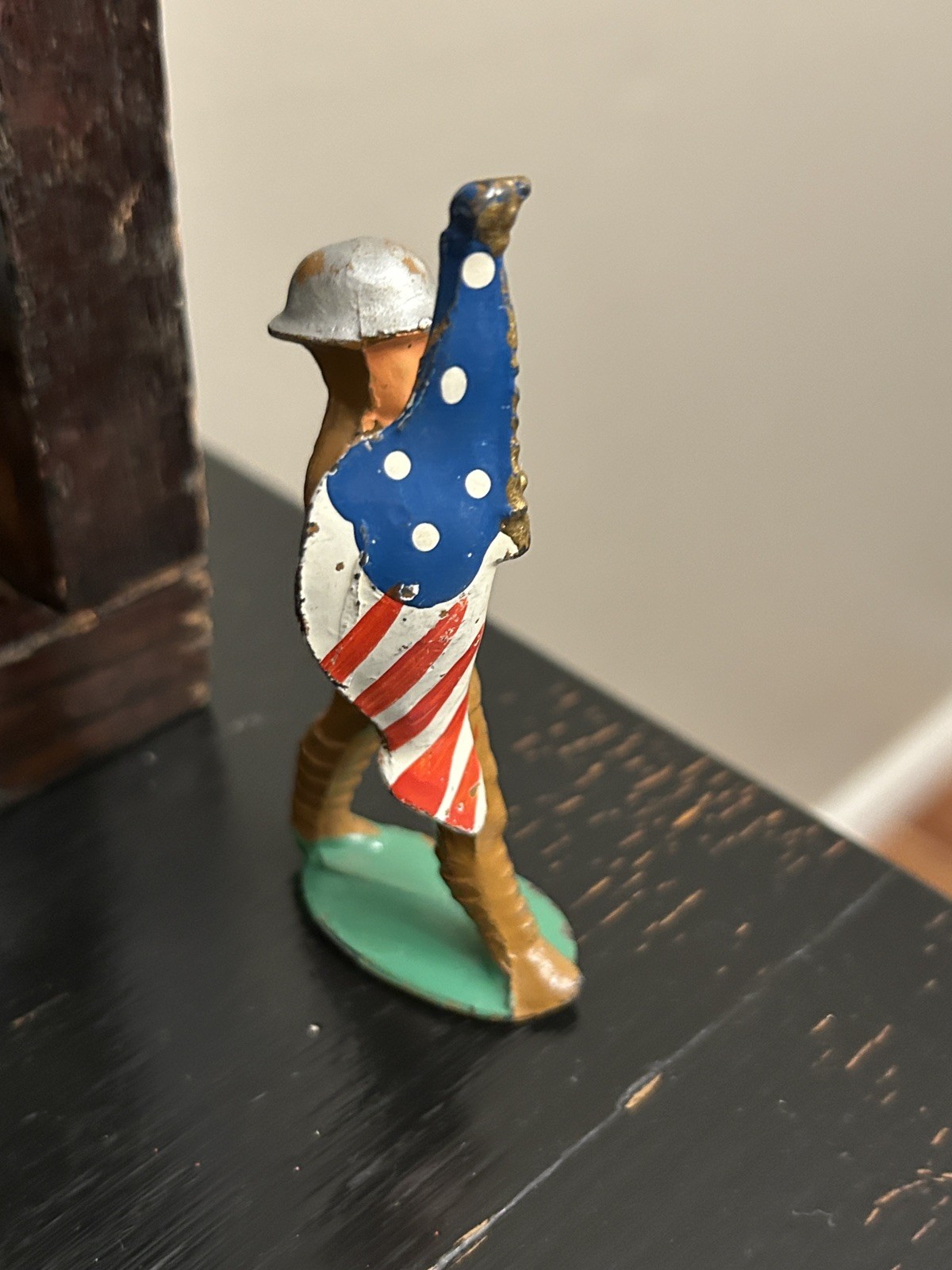 как выглядит VERY NICE MANOIL M3/7 LEAD DIME STORE G.I. SOLDIER FLAG BEARER фото