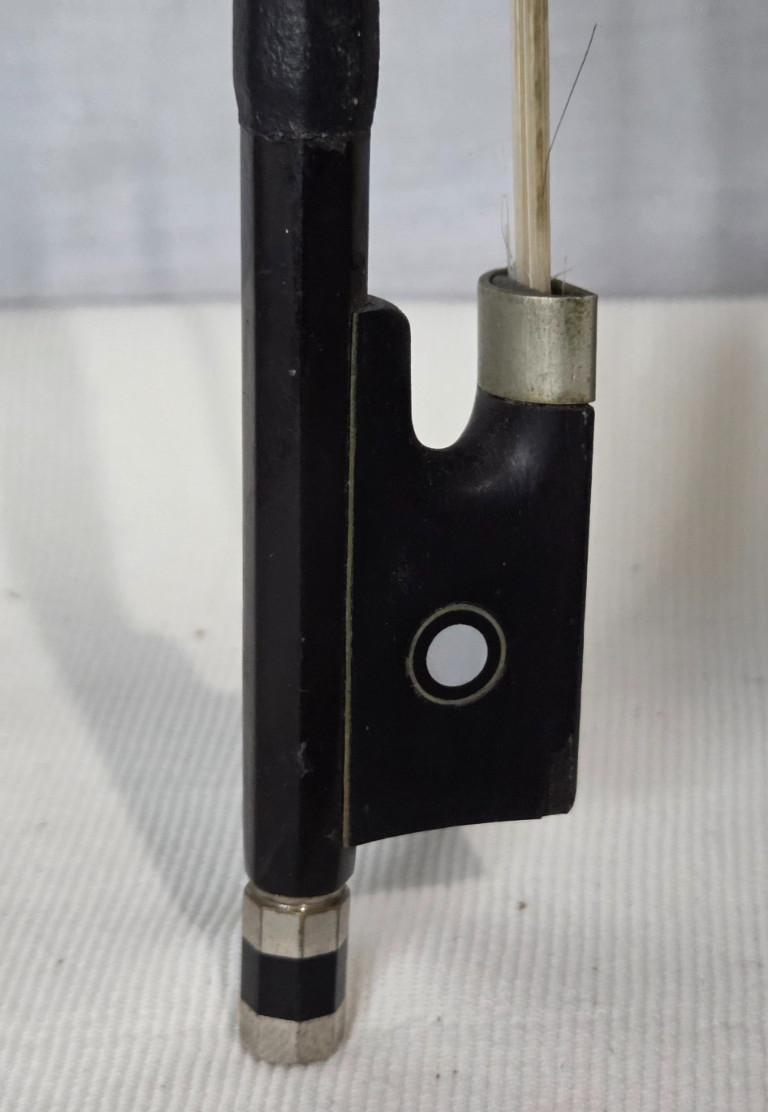 как выглядит Vtg 1/2 Carbon Fiber Violin Bow Natural Horsehair Ebony Frog Round Stick 24.5 фото