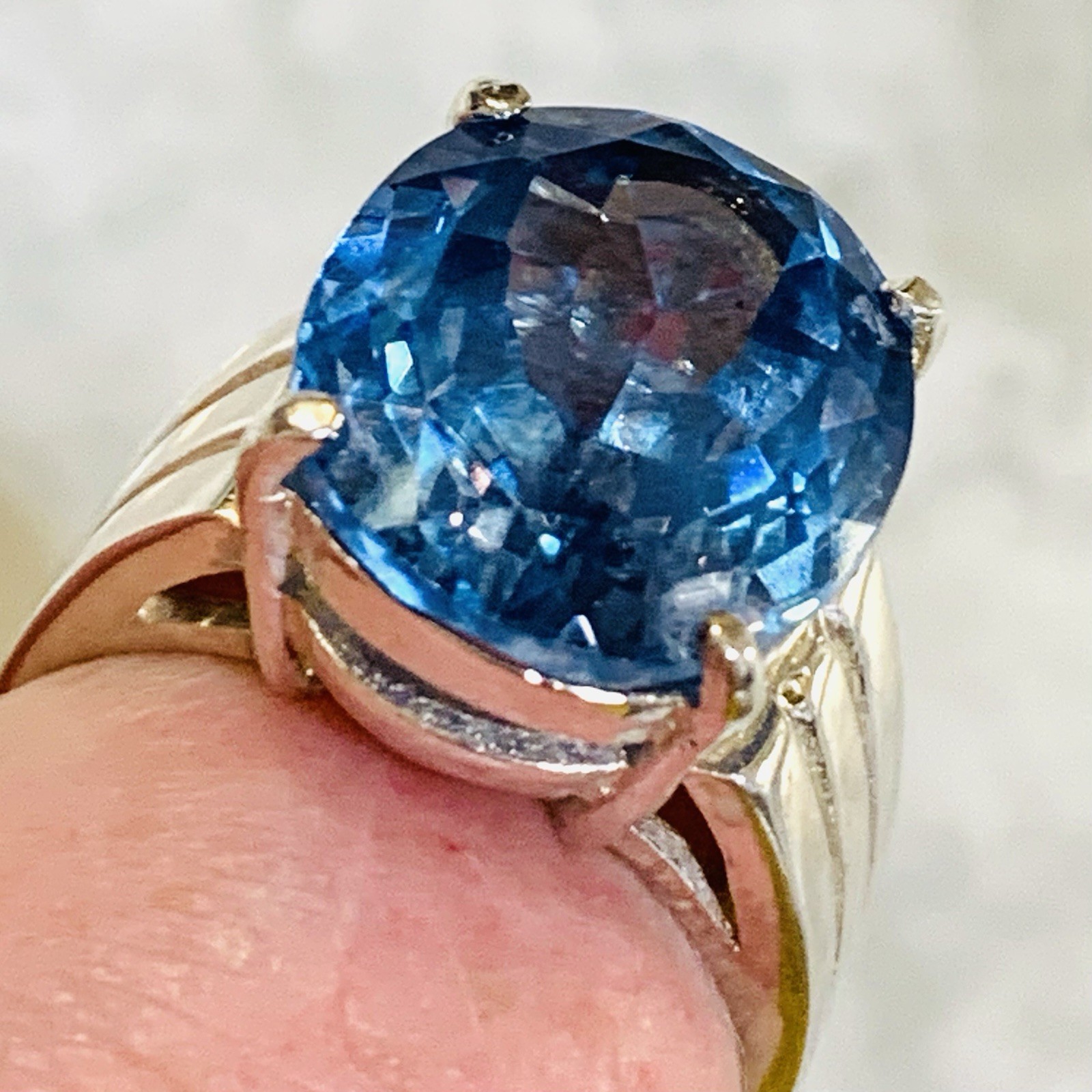 как выглядит VTG 16ct Swiss Blue Topaz Ring 925 Sterling Silver Oval Solitaire Sz 10 фото