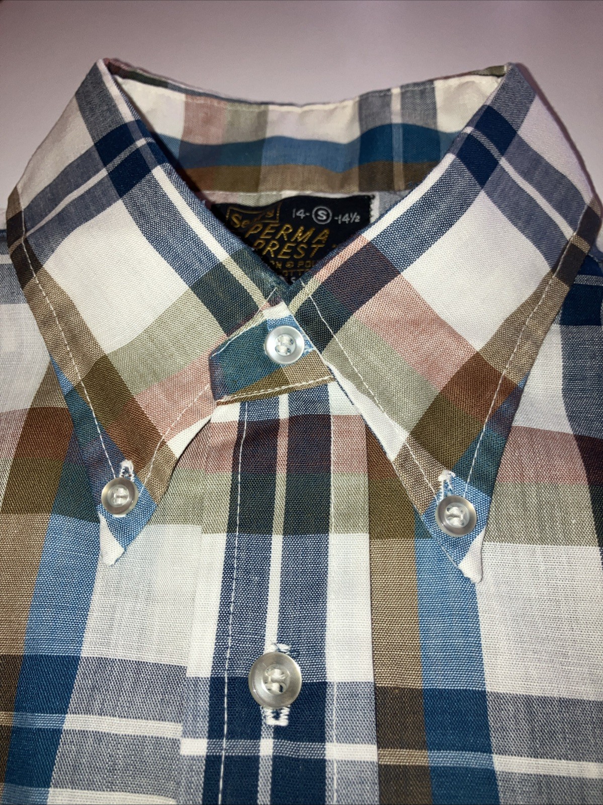 Sears Roebuck 1960 s-Perma Prest -Men s size: Small-Shirt-Button-Down Plaid