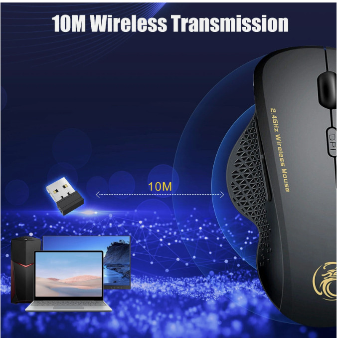 2.4GHz Wireless Optical Mouse Computer Mice 6 Buttons USB Receiver for Laptop