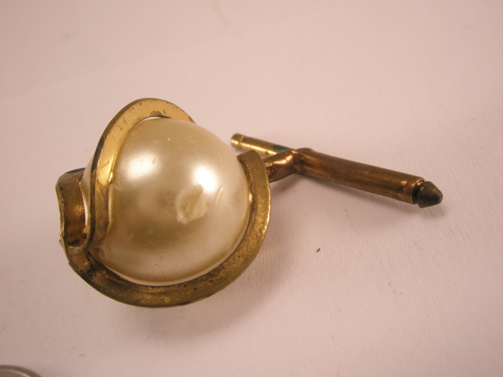 как выглядит SINGLE 1 1/16" Caged Faux Pearl Large Vintage Formal Tuxedo Shirt Stud f11 фото