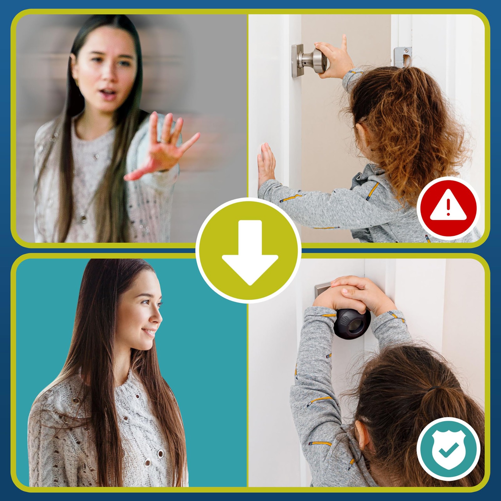 Door Knob Safety Cover for Toddlers 6 Pack Hard-to-Remove Dual-Lock Black