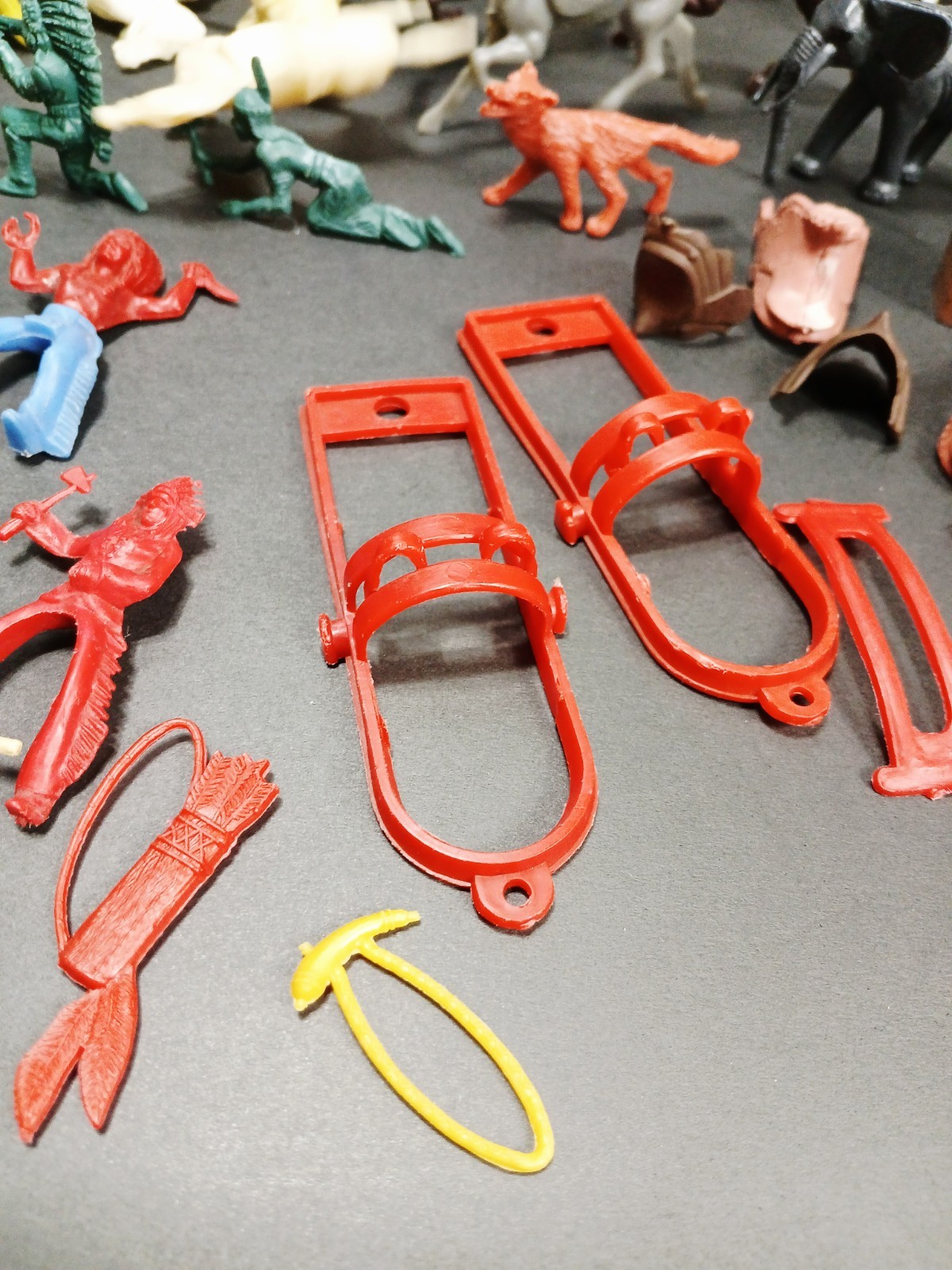 как выглядит Huge Lot of 98 Cowboys Indians Figures / Accessories / Animals - Marx/Tim Mee фото