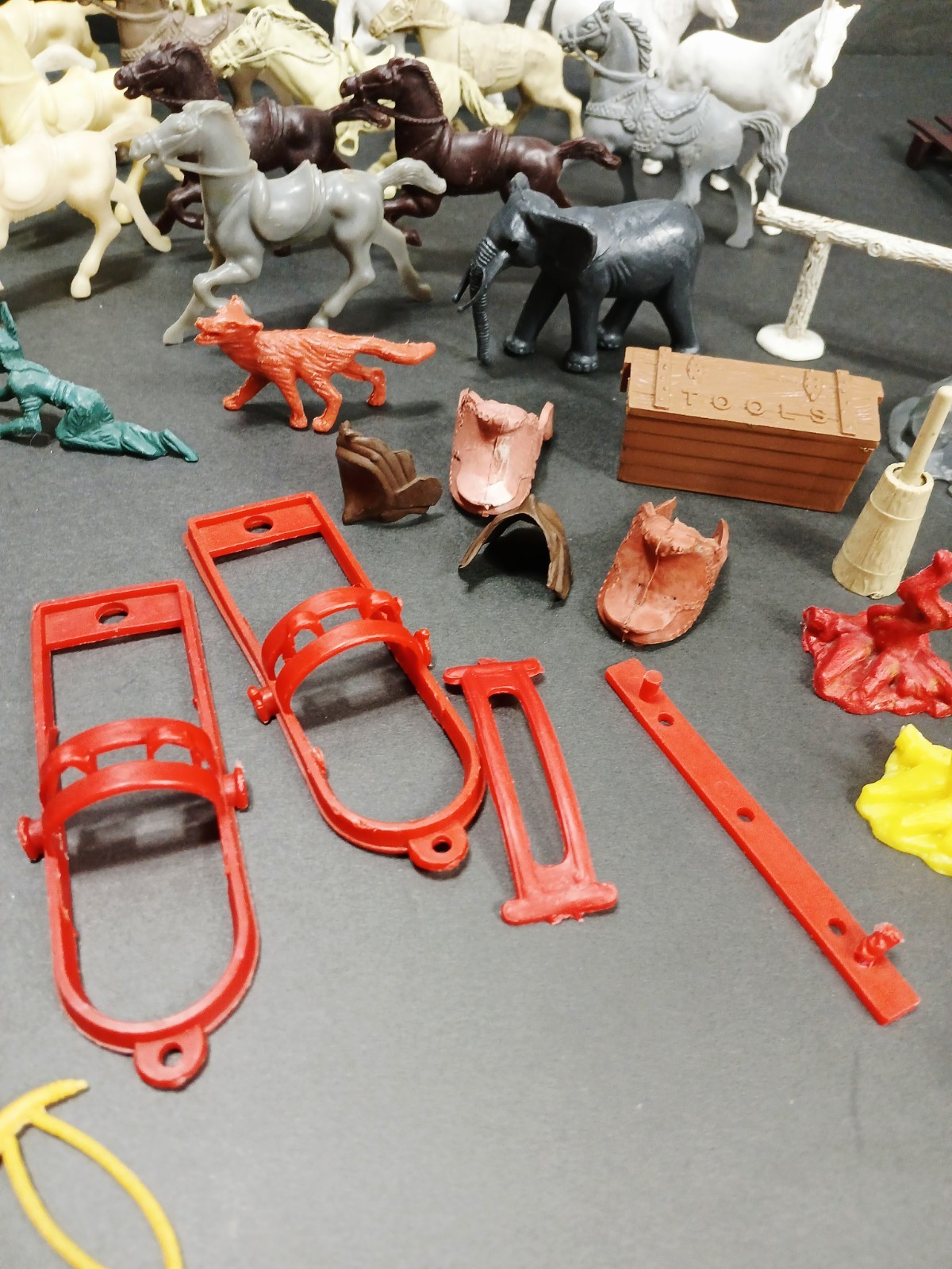 Huge Lot of 98 Cowboys Indians Figures / Accessories / Animals - Marx/Tim Mee