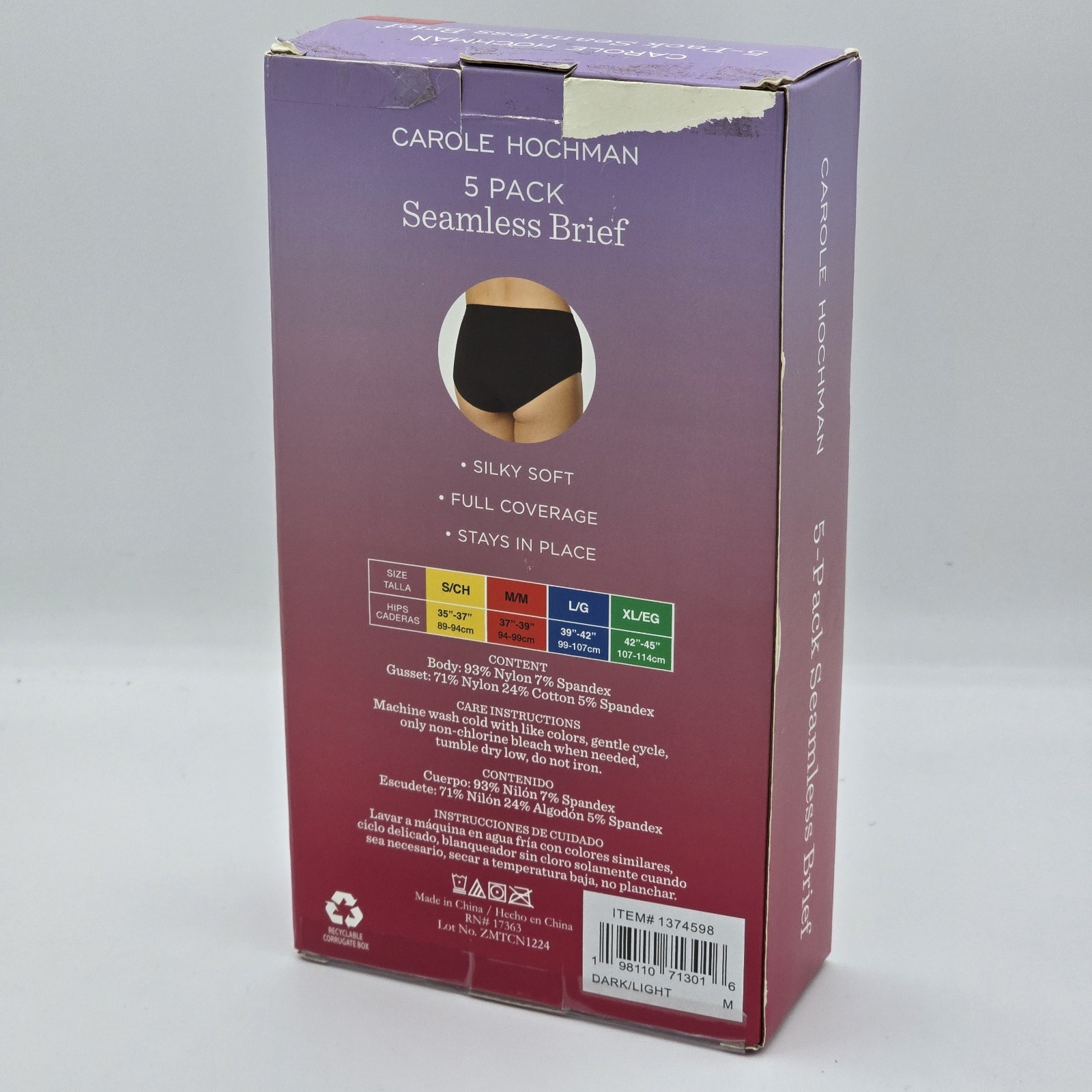 Carole Hochman Womens Seamless Brief Underwear 5 Pack Silky Soft Full Coverage M