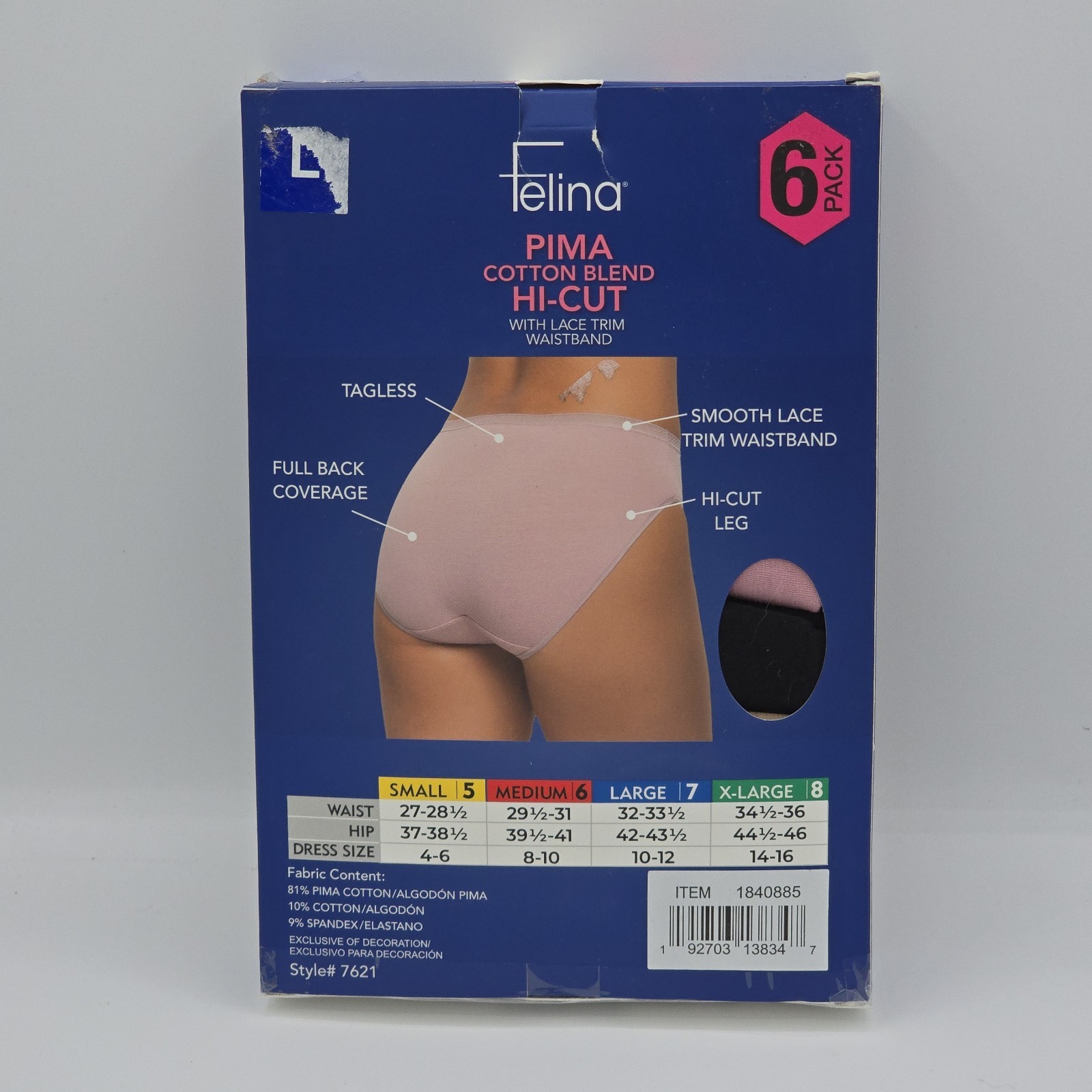Felina Womens Hi Cut Underwear 6 Pack Pima Cotton Blend Lace Trim Waistband