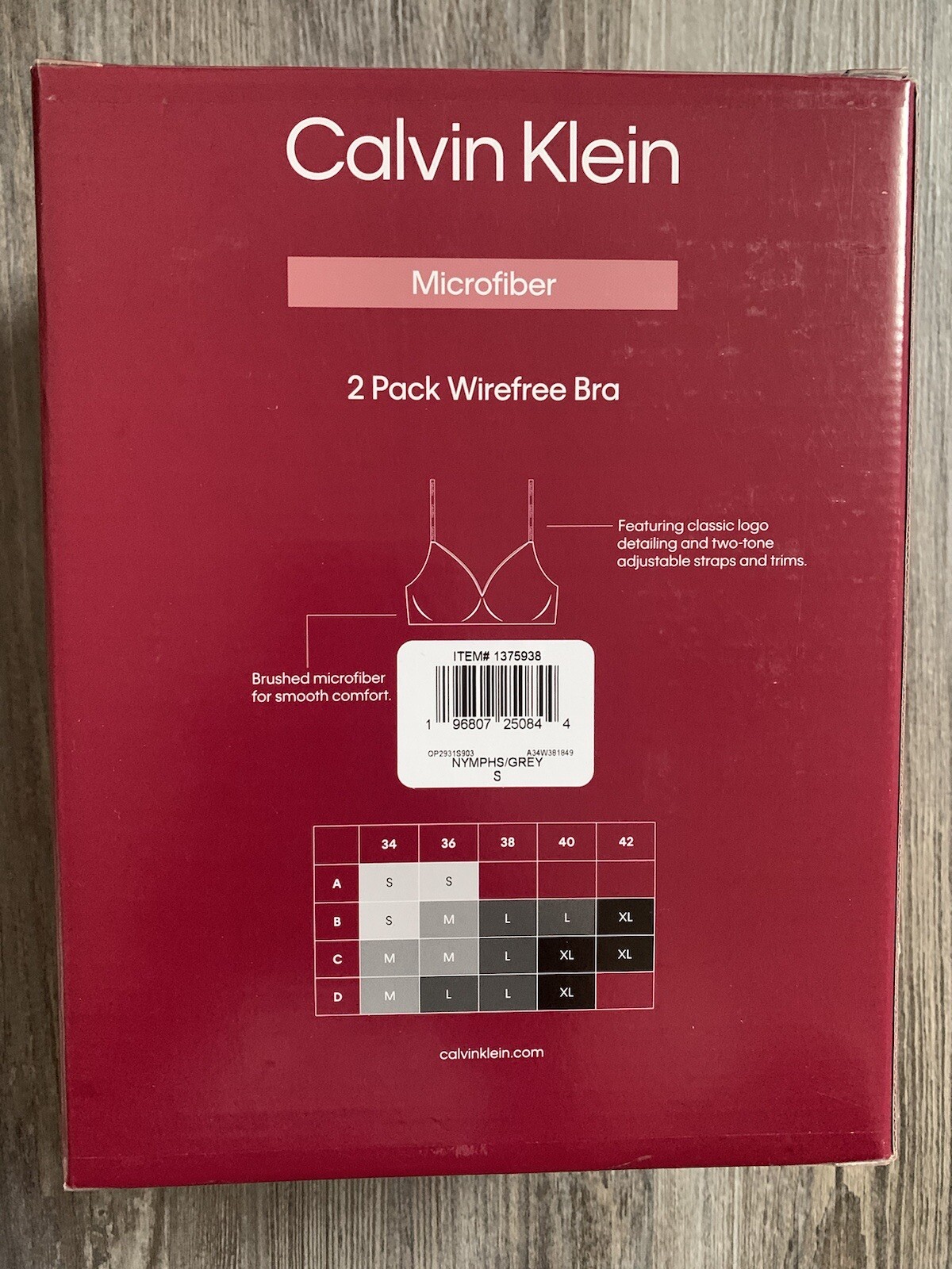S Calvin Klein 2 pack Ladies Lightly Lined Wirefree Microfiber Gray Pink Bra