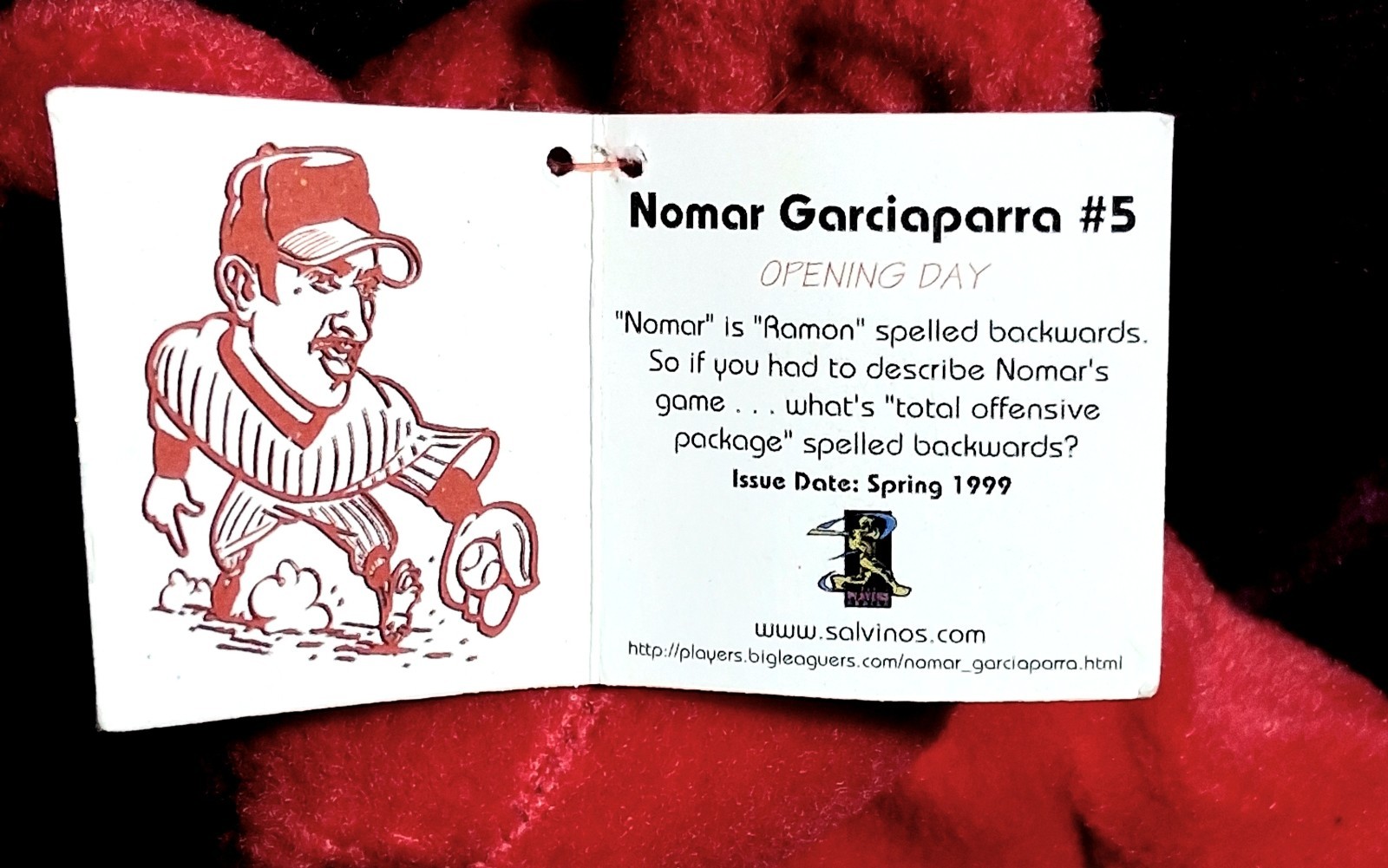 • GUC SALVINO'S BAMMERS OPENING DAY 1999 Nomar GARCIAPARRA 5 Red Plush Bear 9