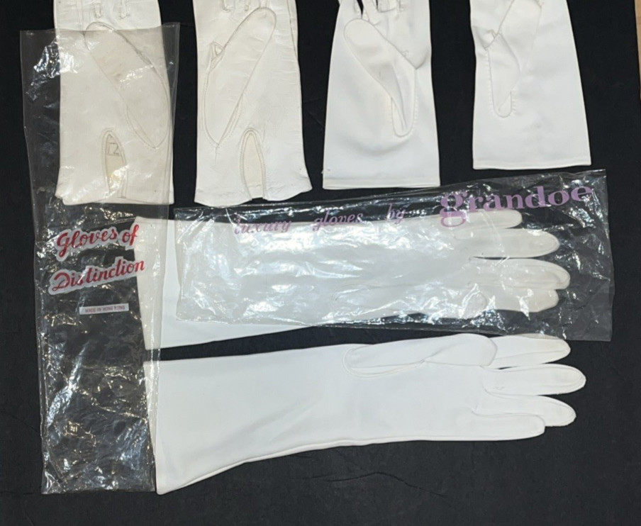 VTG Lot of 3 Gloves Leather Cloth Embroidered Button Dress Driving Ivory Sz 7
