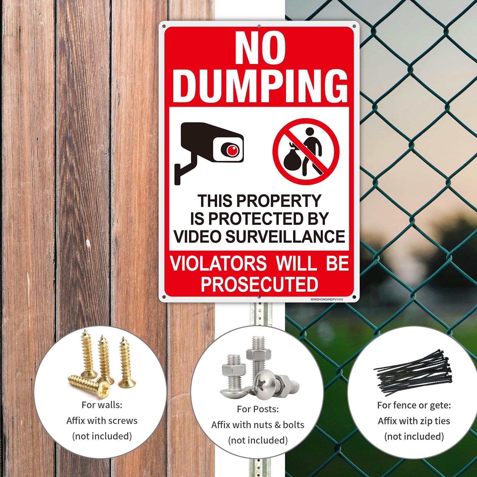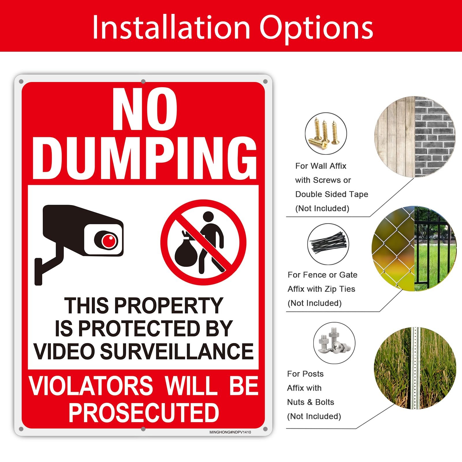 1 Pack No Dumping Sign Video Surveillance, 14x10Inch 14x10Inch, 1 Pack-Red B