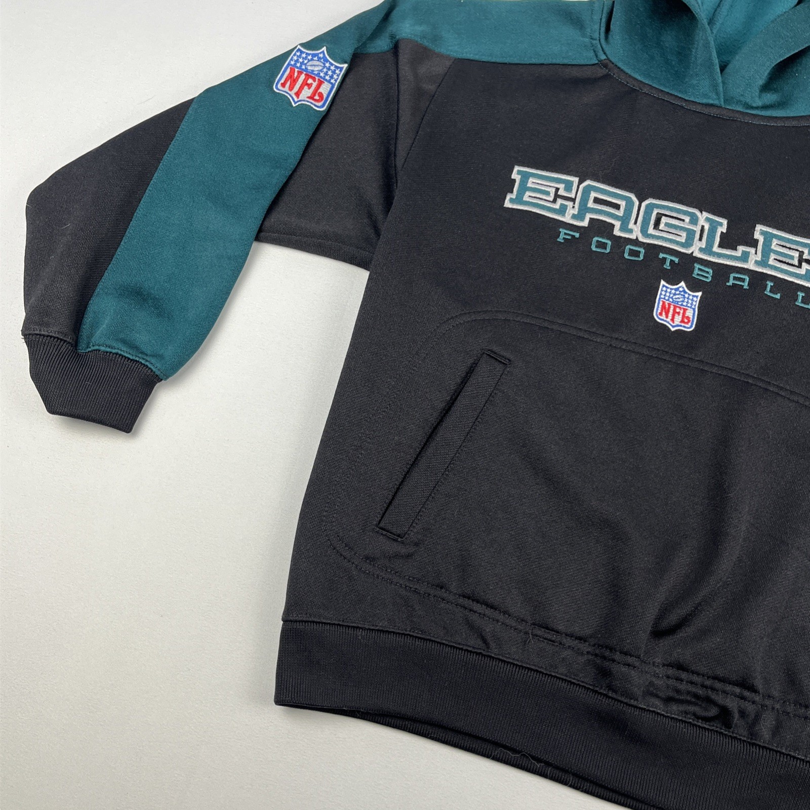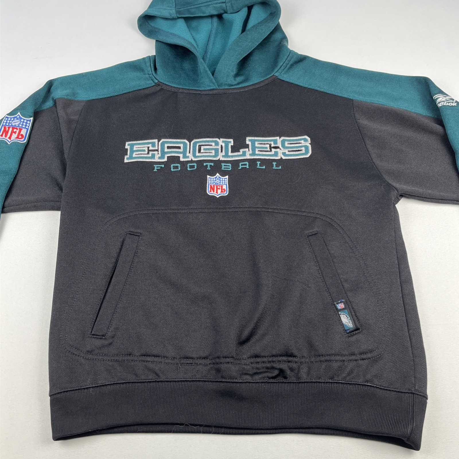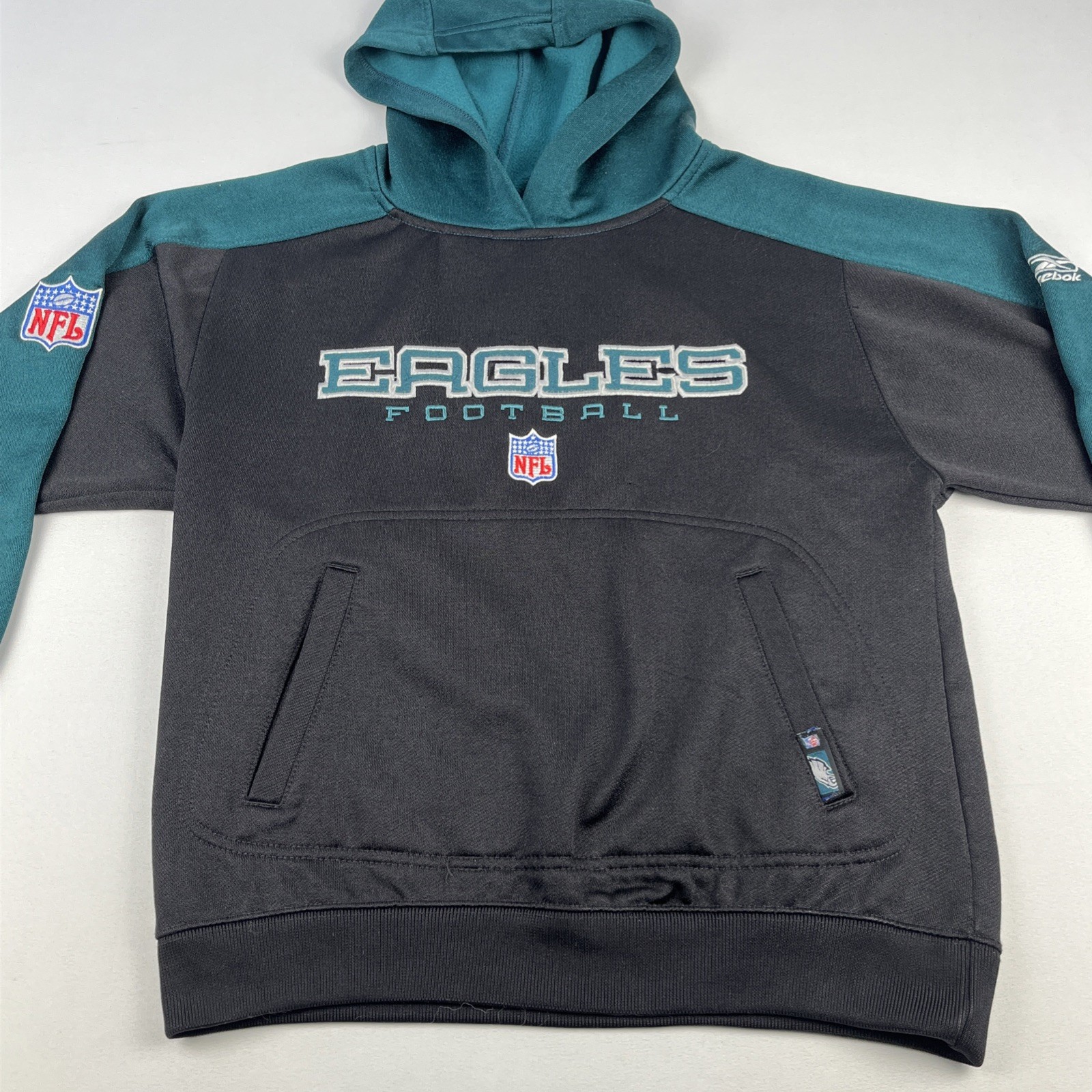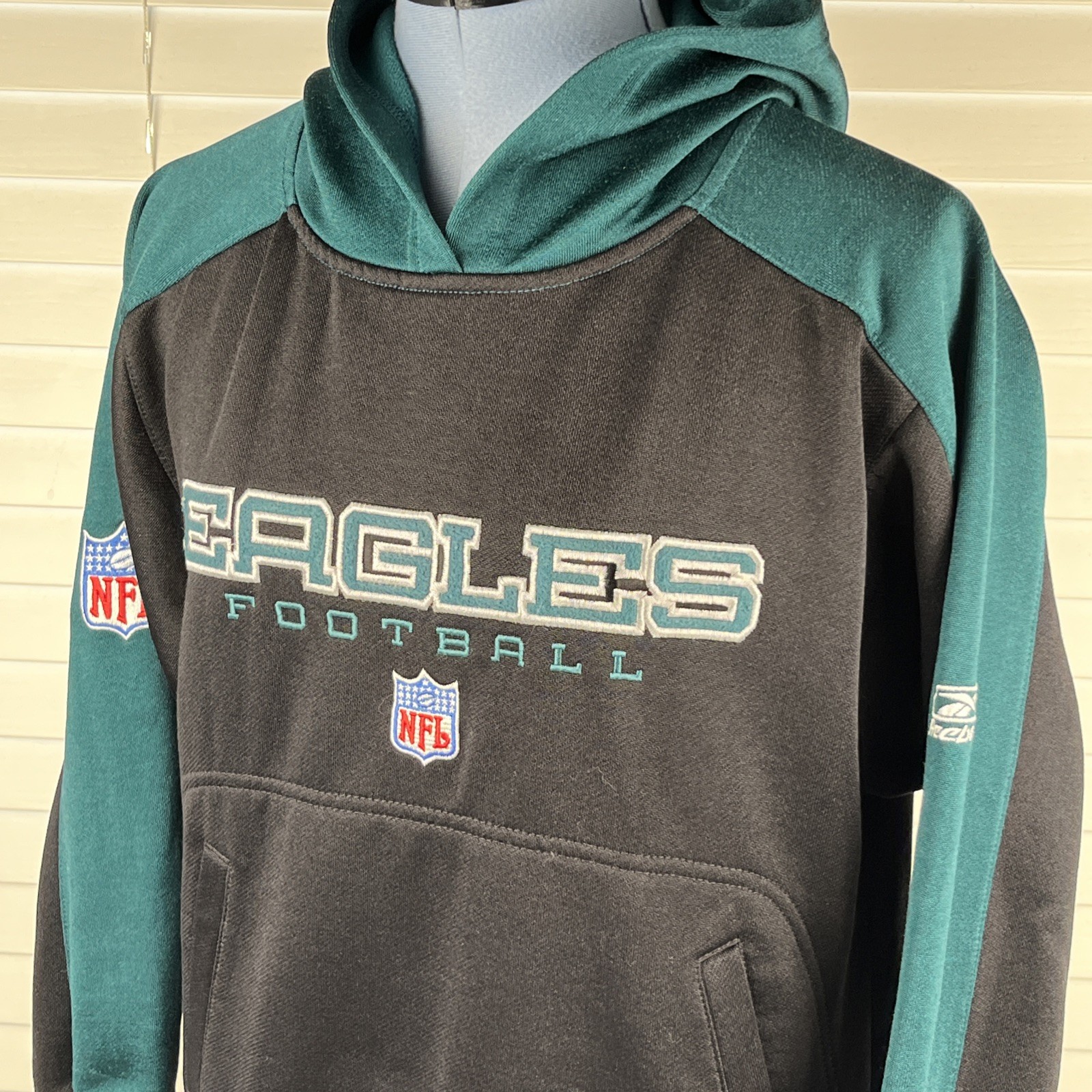 • Vtg Philadelphia Eagles Hoodie Size Reebok NFL Football Spell Out Black Green