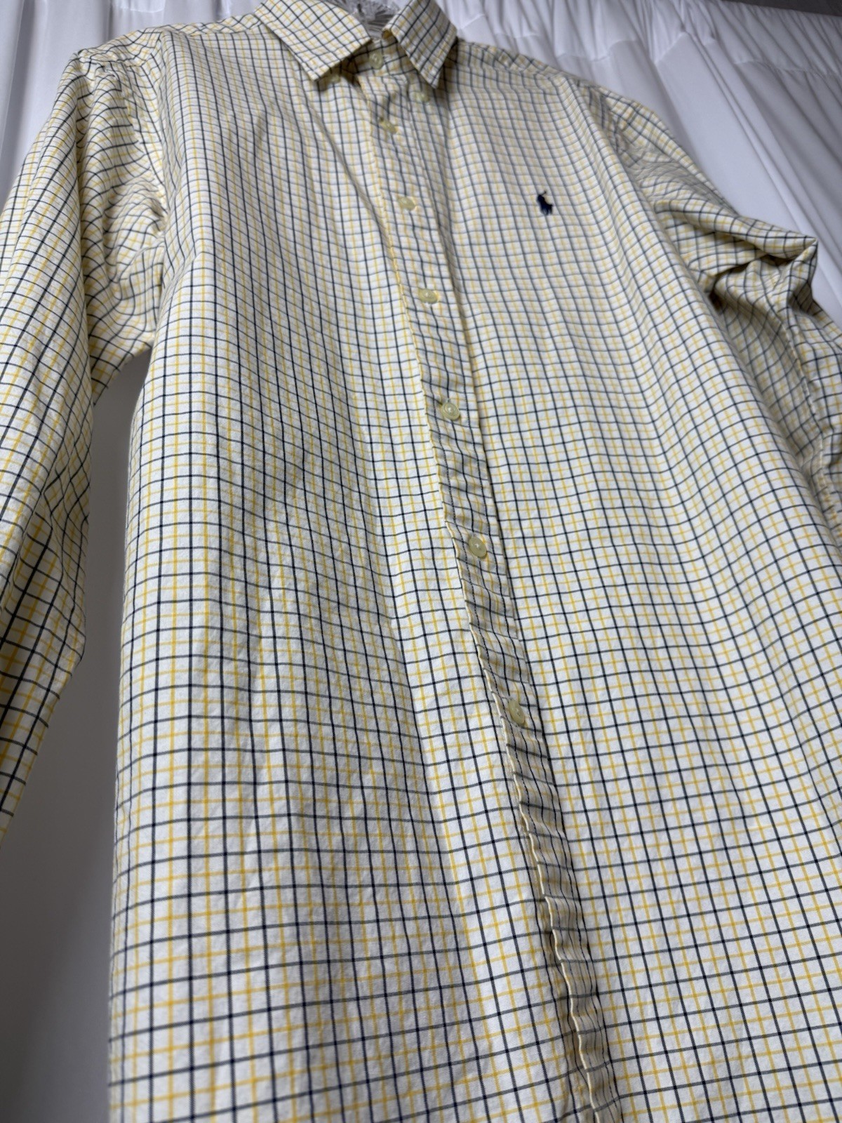 Ralph Lauren Polo Mens Yellow Blue White Checker Brown Pony Button Shirt M