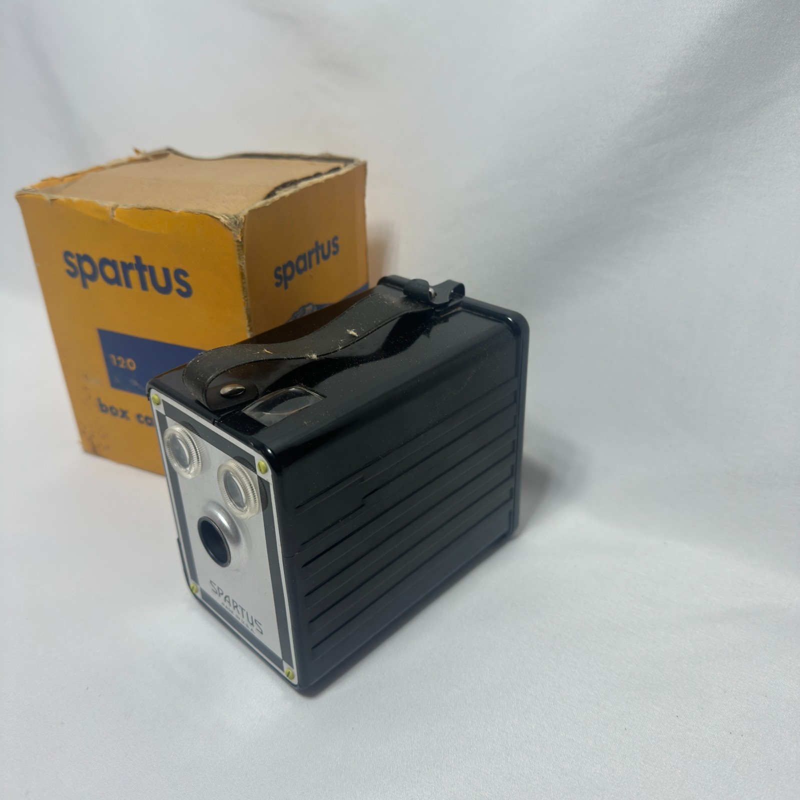 Vintage Spartus Box Camera 120 Black Silver Bakelite Body 1942 With Box