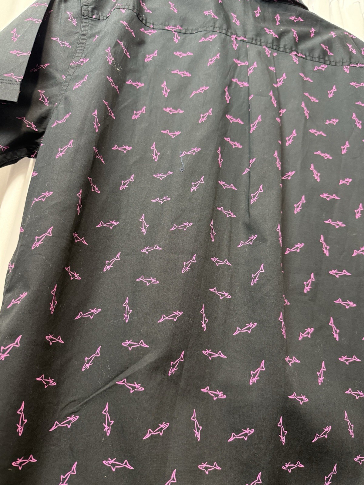 Bixby Nomad Shirt Size Black Pink Shark Print Short Sleeve Button Down large