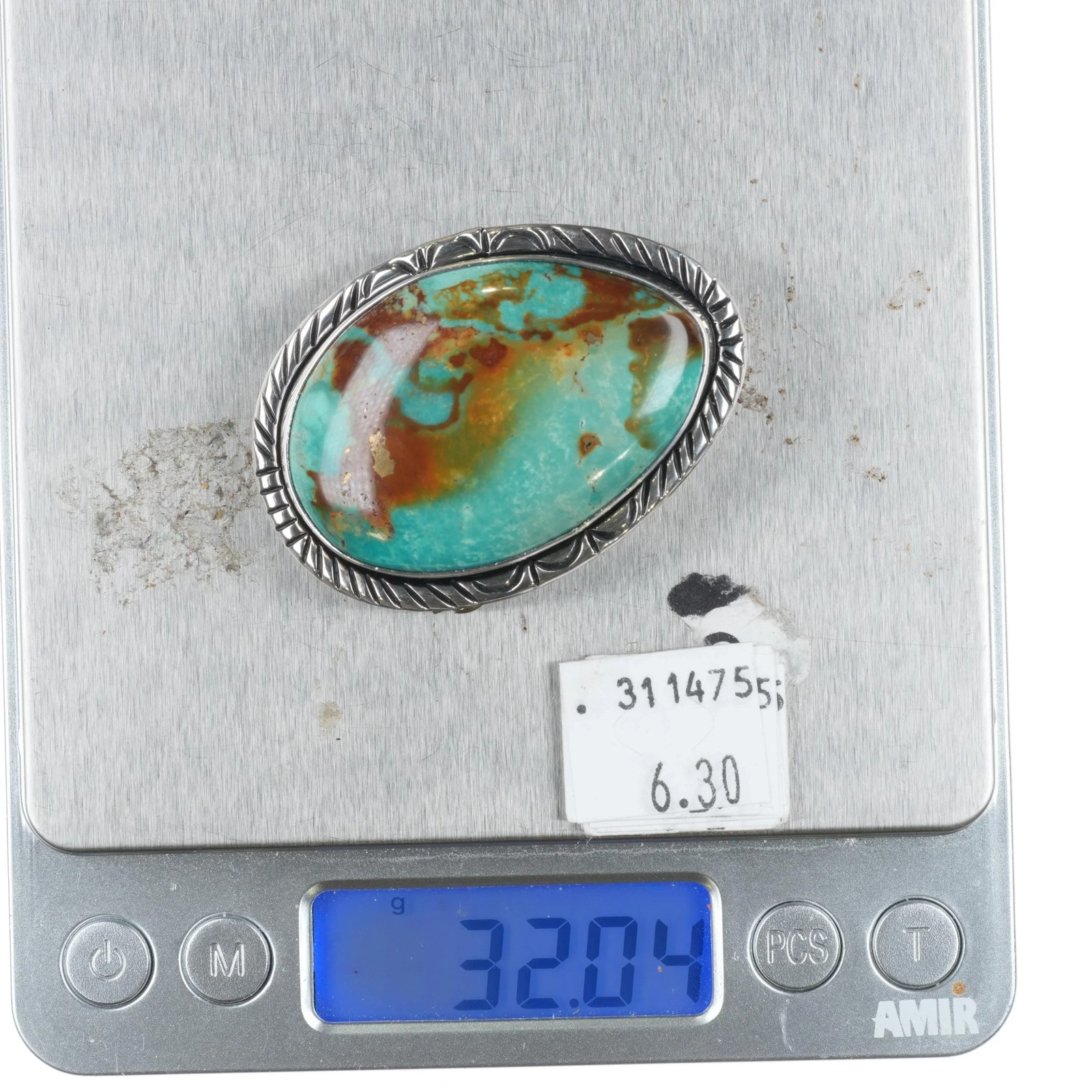 • ED Retro Southwestern sterling silver lg stone Royston turquoise belt buckle