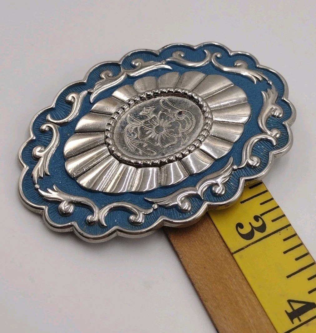 как выглядит Western Blue And Silver Floral Belt Buckle With A FLAW фото