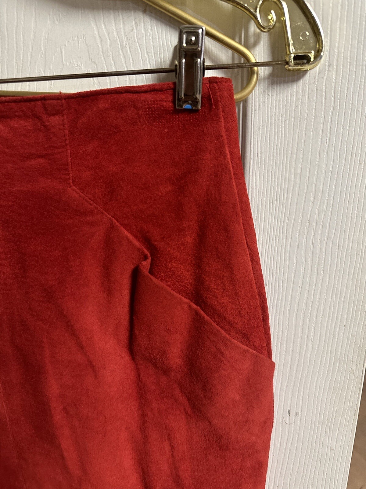 как выглядит Vnt 100 Suede Leather Mini Skirt Red Boho 90 s 80 s Small 6 Maxima 26x24 Deco фото