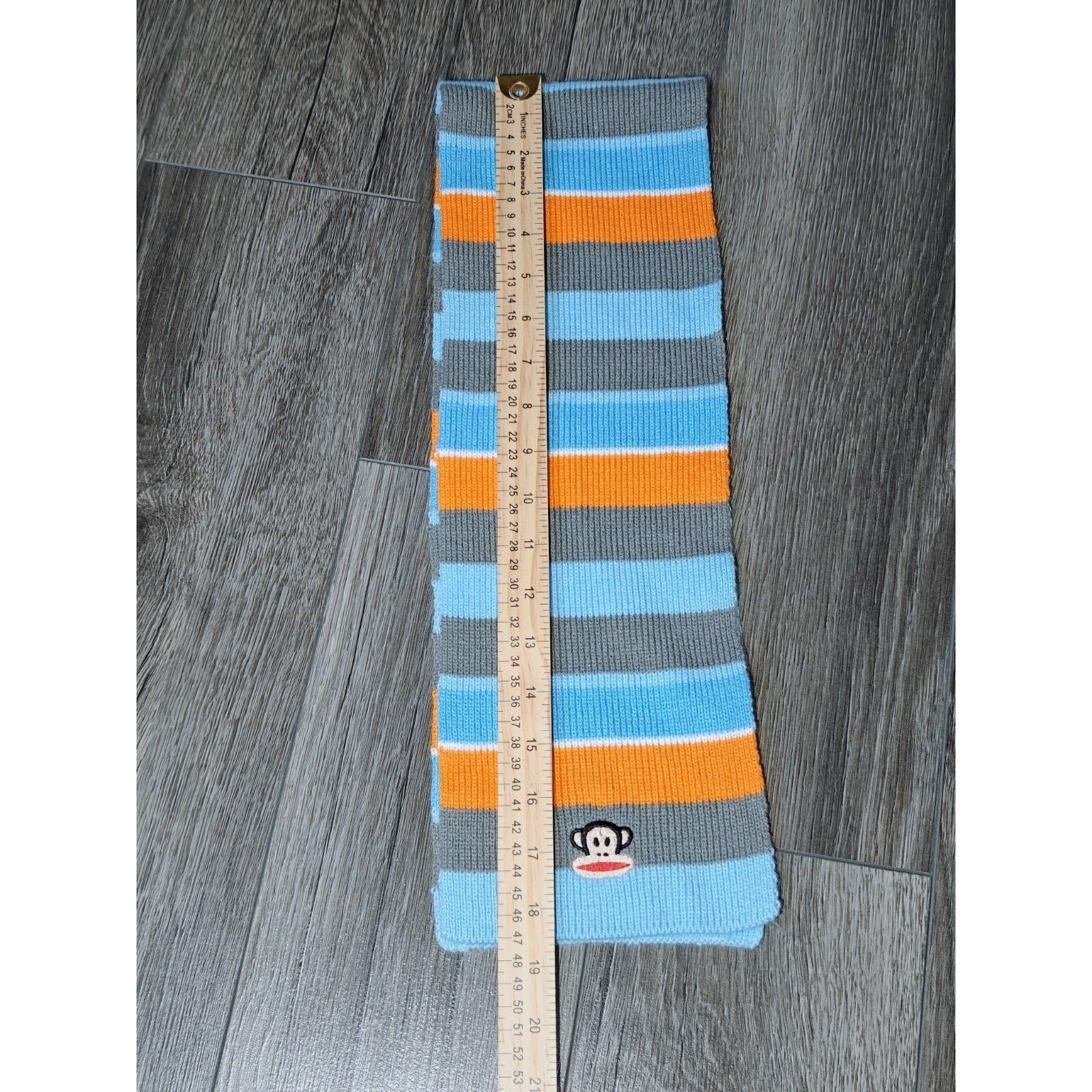 как выглядит Paul Frank Kids Youth 4-16 Striped Scarf Orange Blue Gray Monkey Logo фото
