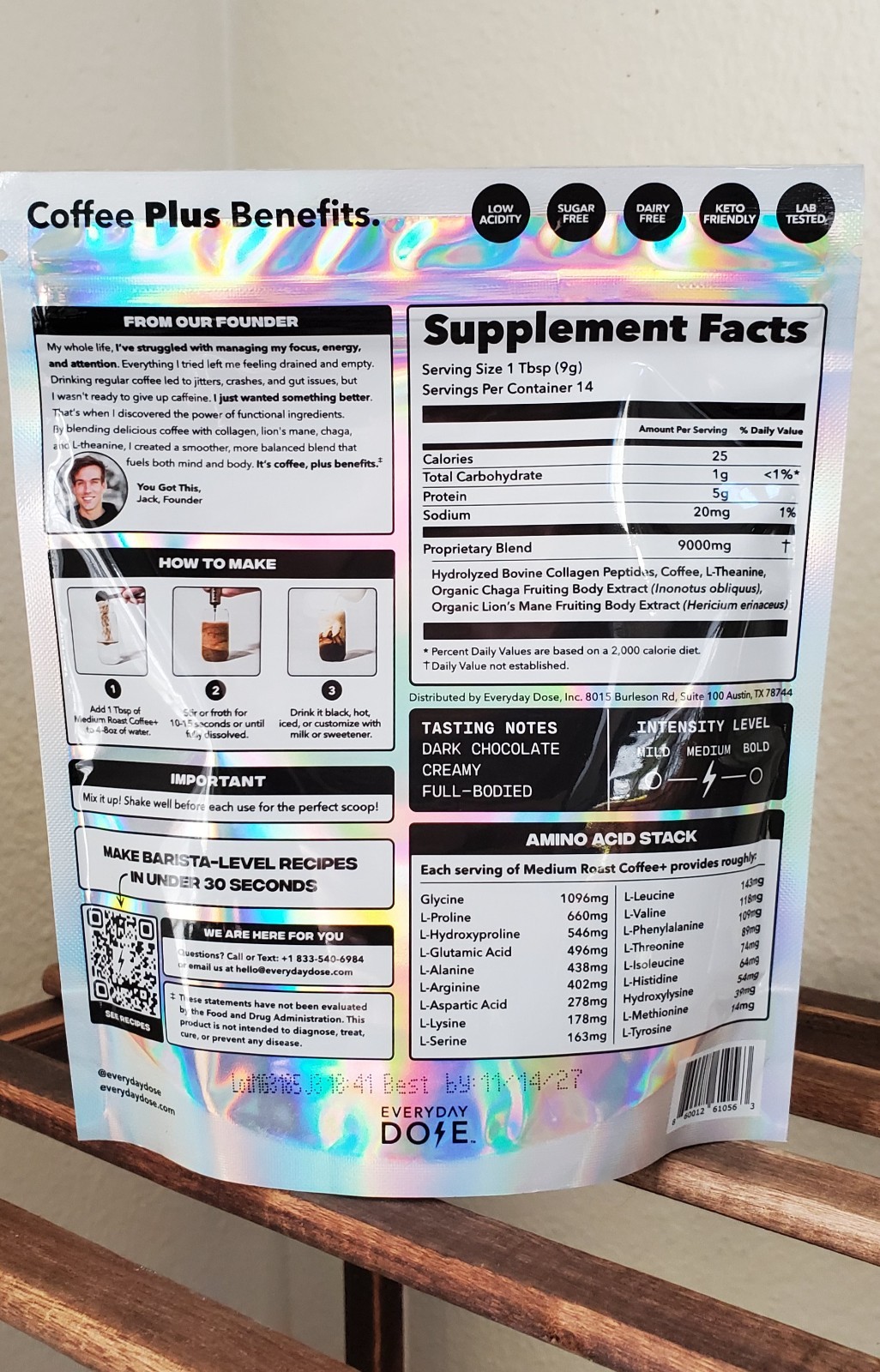 Everyday Dose Mushroom Coffee Medium Roast Collagen Protein Nootropics Focus