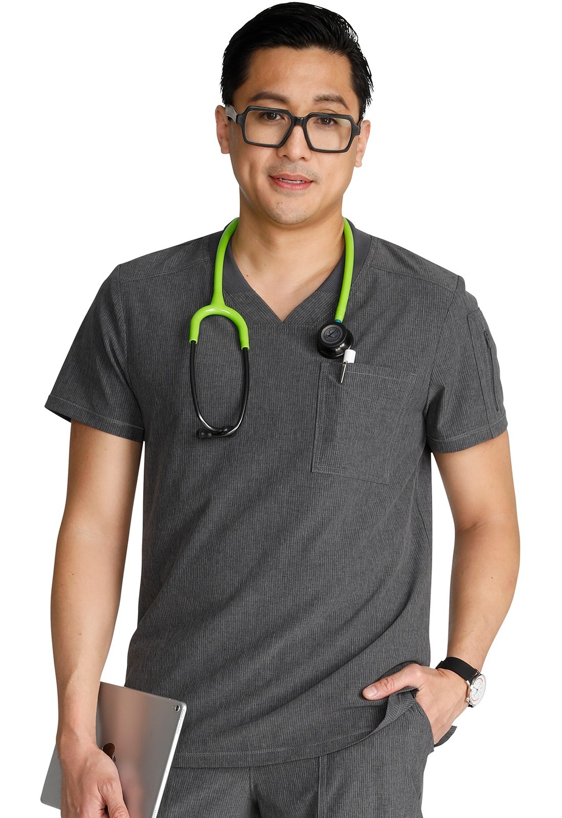 как выглядит Cherokee Scrubs Mens V-Neck Top CK824A HTPT Heather Pewter Free Shipping фото