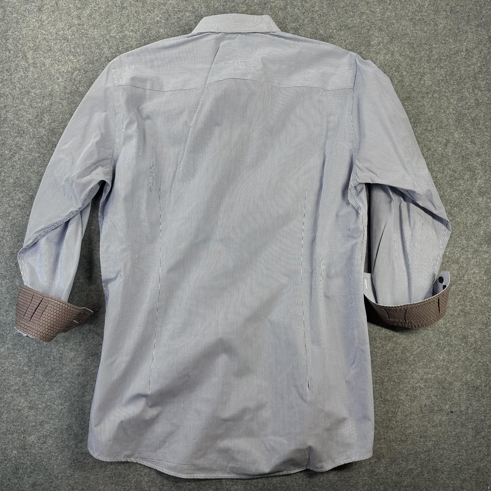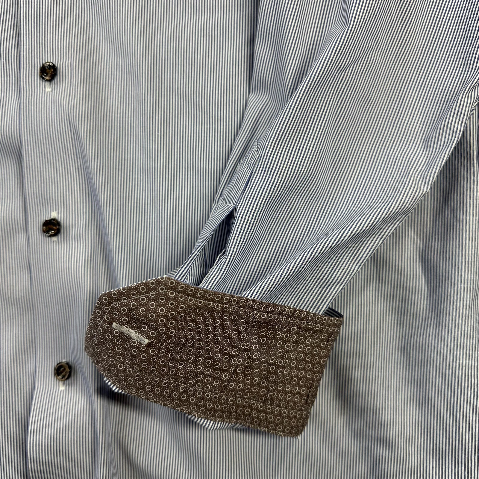 как выглядит ETON Dress Shirt Mens 16.5 Blue Stripe Contemporary Fit Long Sleeve Flip Cuff фото