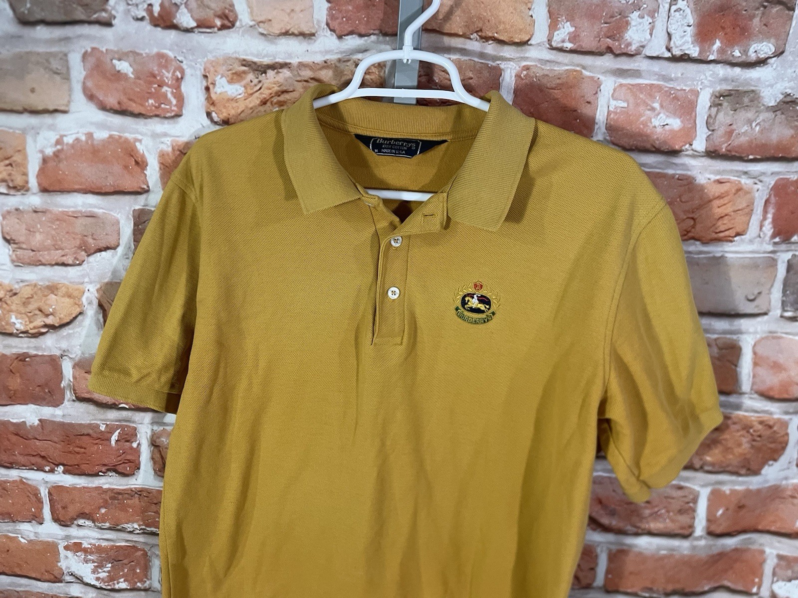 как выглядит vintage Burberrys golden yellow polo shirt sz M фото