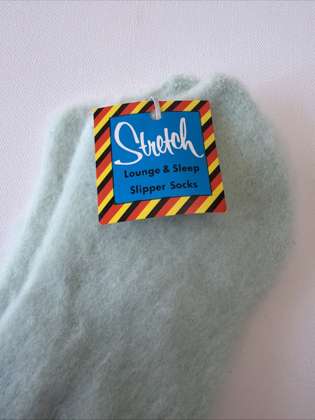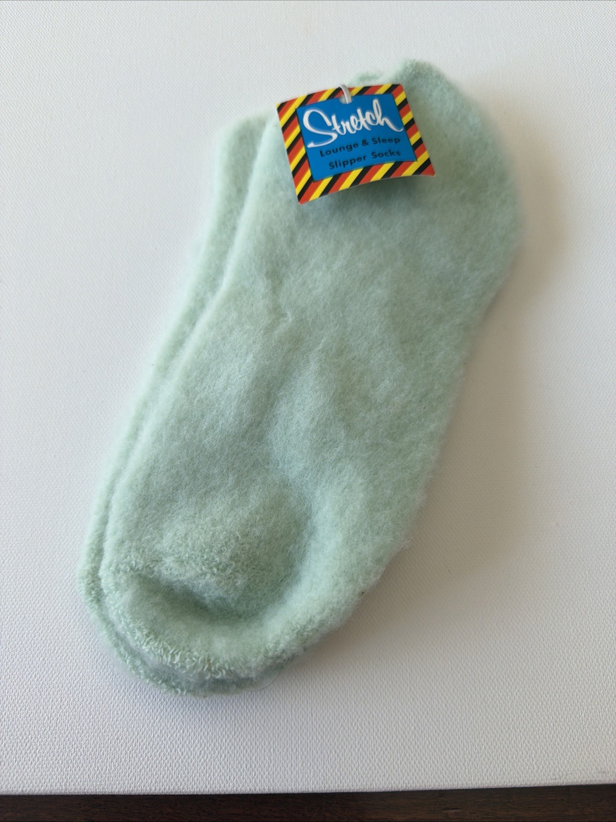 VTG Socks 80's Stretch Mint Green Low Cut Acrylic Slipper Lounge Sleep 9-11