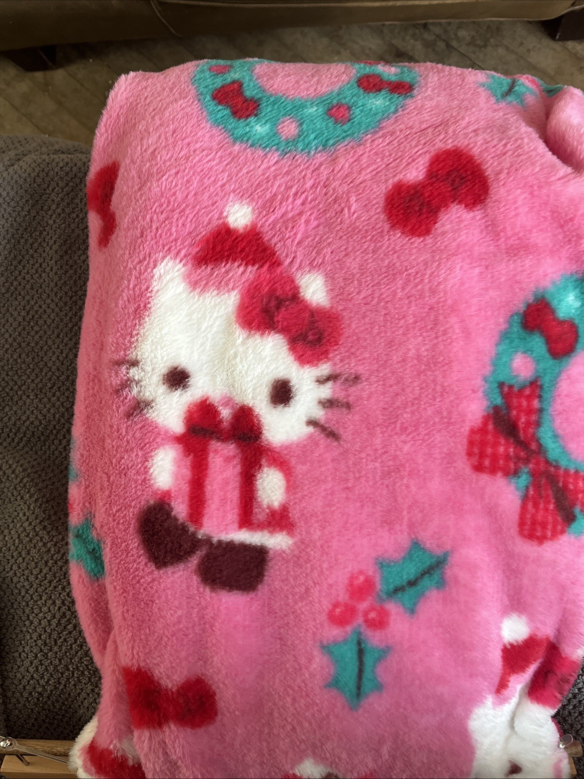 NEW Hello Kitty Ultra Fine Faux Fur Throw Blanket 50 x 70 Pink Christmas